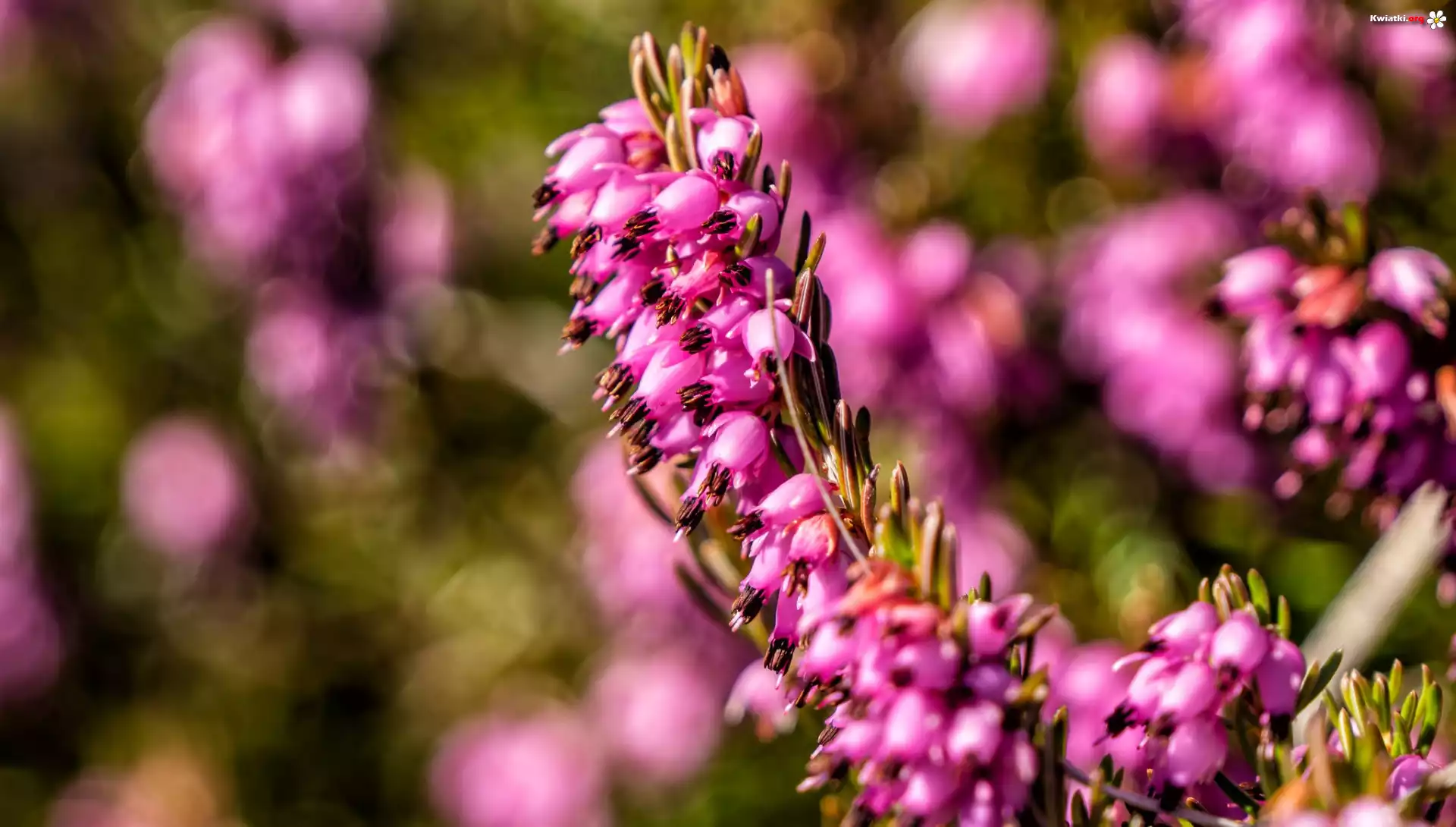 Kwiaty, Gałązka, Wrzosiec krwisty, Rozmycie - Zdjęcia