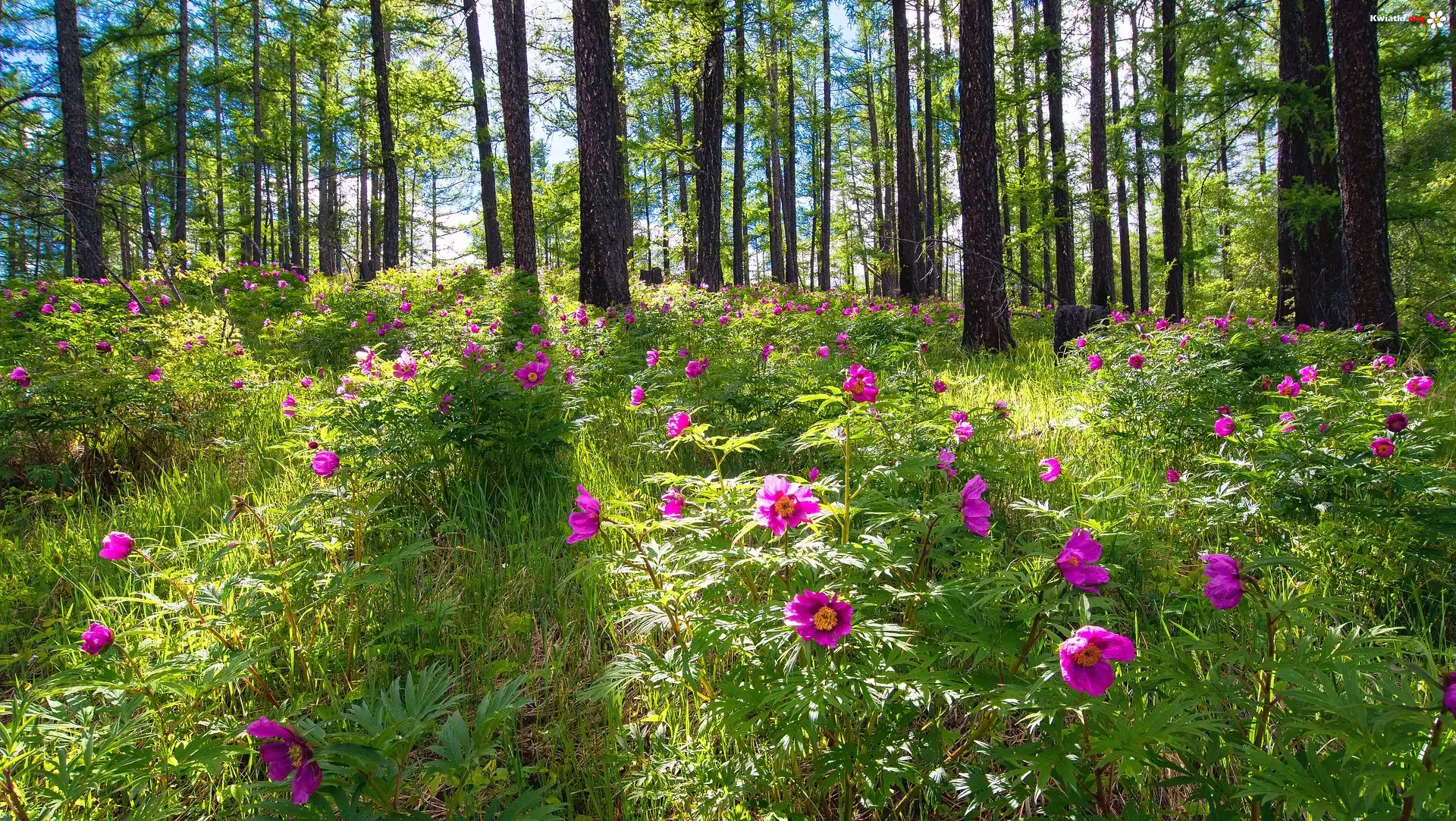 Las, Kwiaty, Piwonia - Zdjęcia