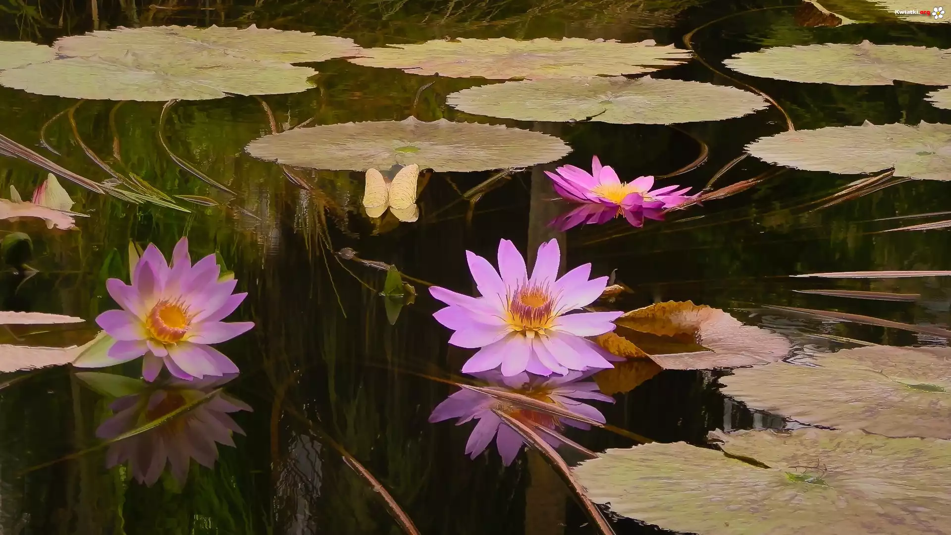 Kwiat Różowe, Kwiaty, Lilia wodna, Liście