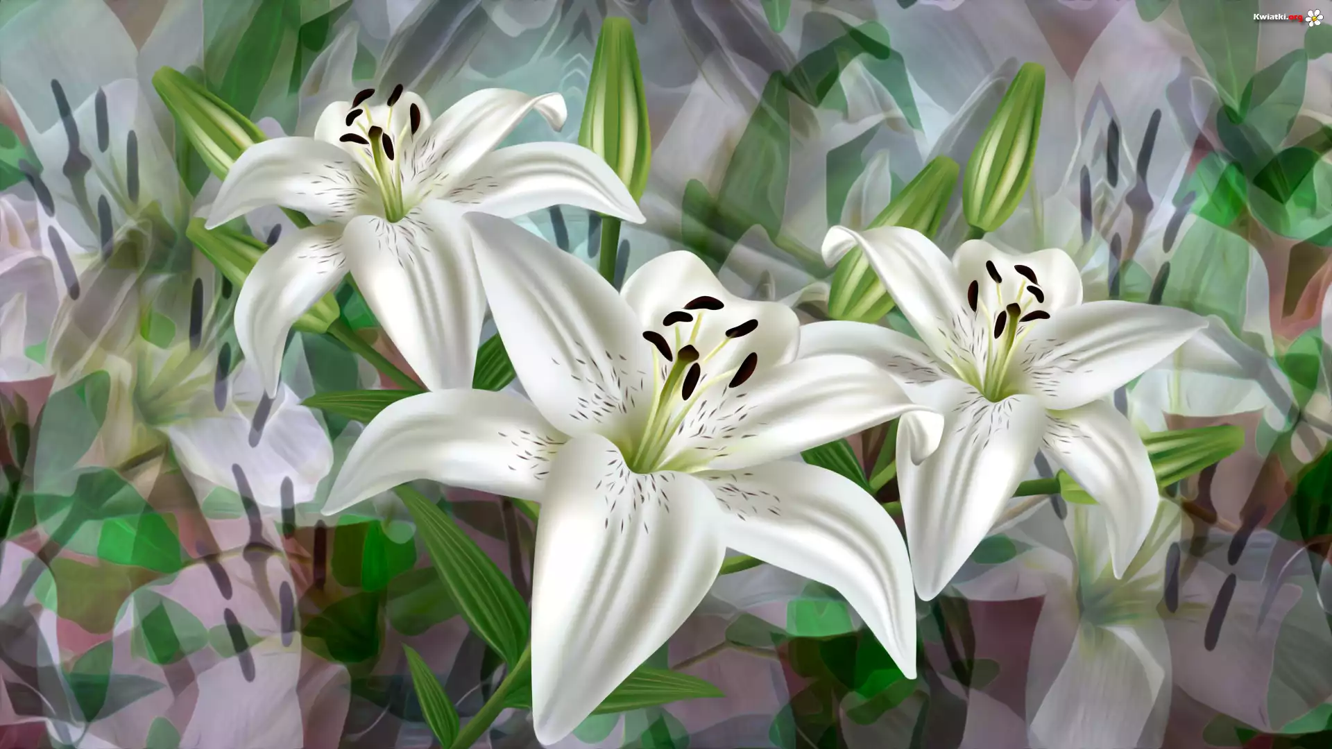 Kwiaty, Trzy, Białe, Lilie, 2D - Zdjęcia