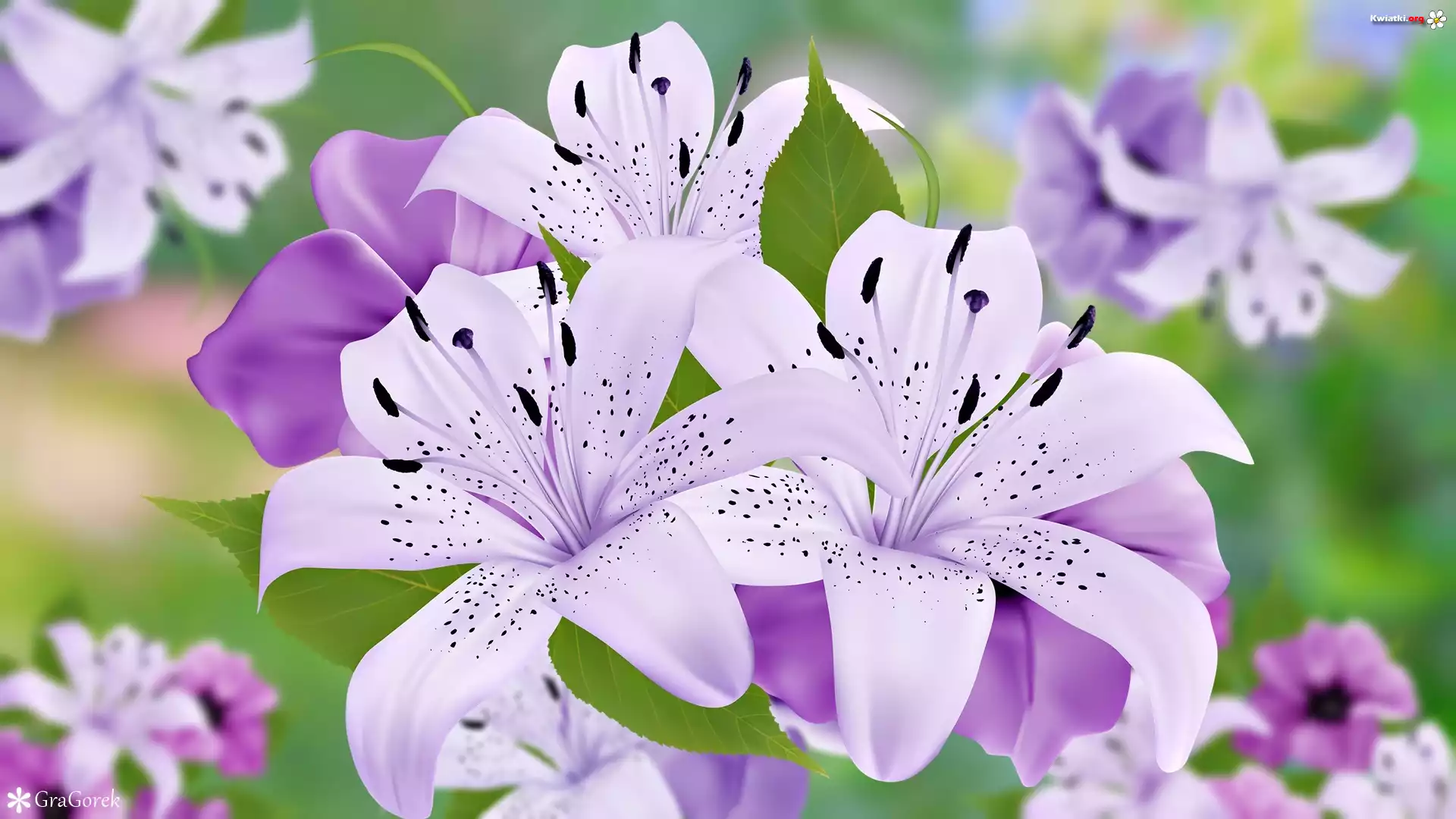 Kwiaty, Fioletowe, Lilie, Grafika - Zdjęcia