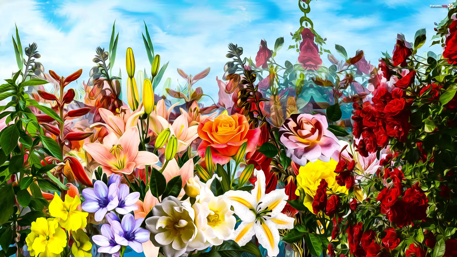 Kwiaty, Róże, Lilie, Grafika - Zdjęcia