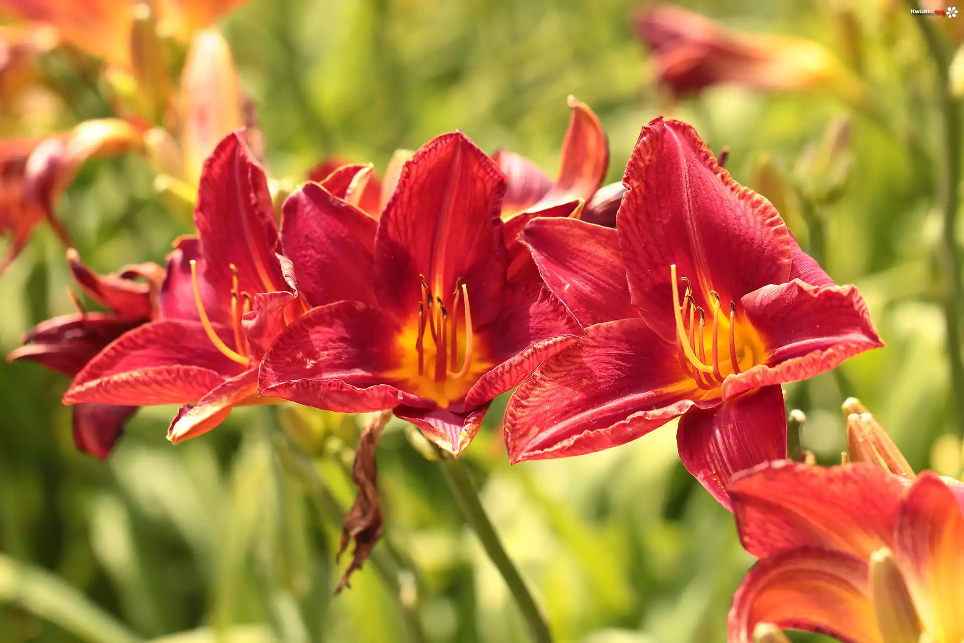 Liliowce, Kwiaty, Czerwone - Zdjęcia