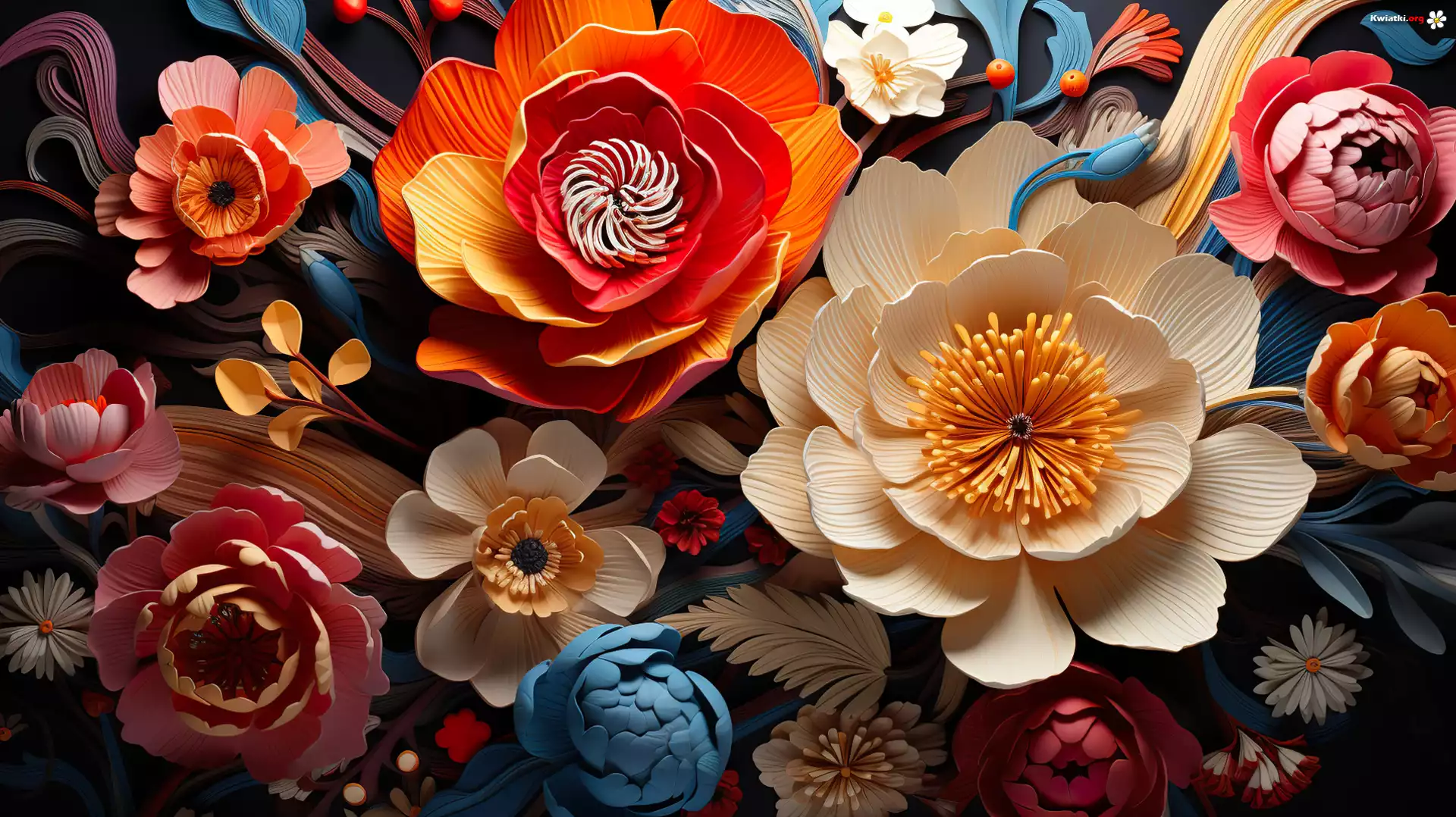Kolorowe, Kwiaty, Liście, Grafika, 2D - Zdjęcia