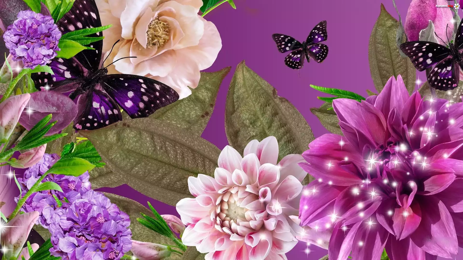 Kwiaty, Kolorowe, Liście, Motyle - Zdjęcia