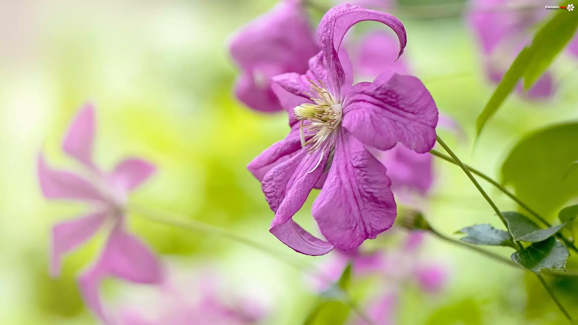 Kwiaty, Różowy, Powojnik, Liście, Rozmycie - Zdjęcia