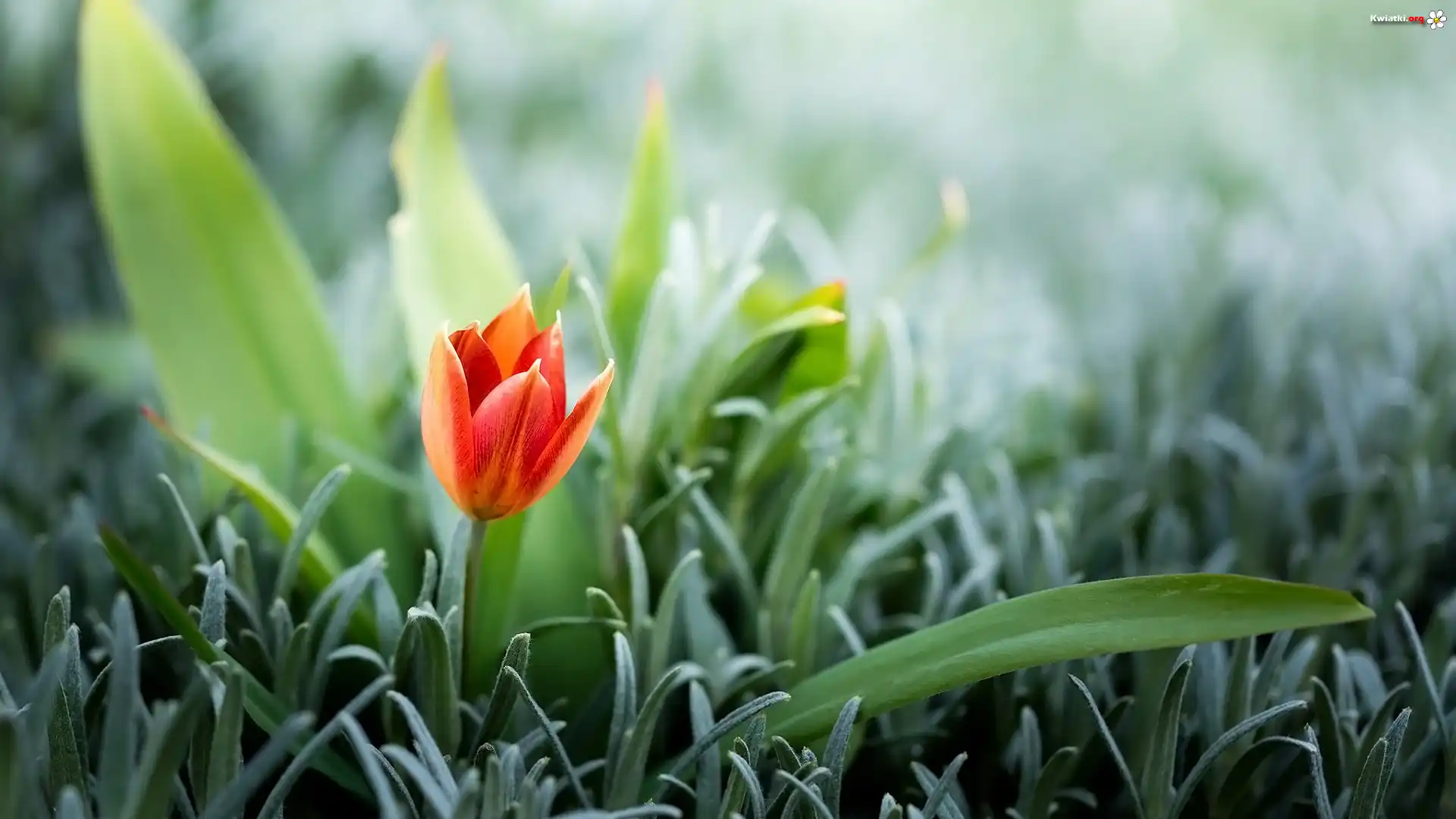 Kwiaty, Tulipan, Liście, Rozmycie - Zdjęcia