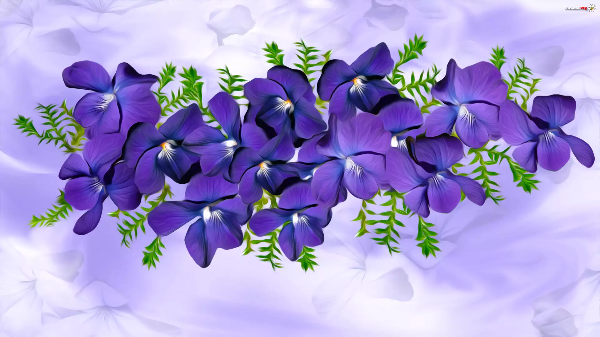 Kwiaty, Fiołki, Listki, Grafika - Zdjęcia