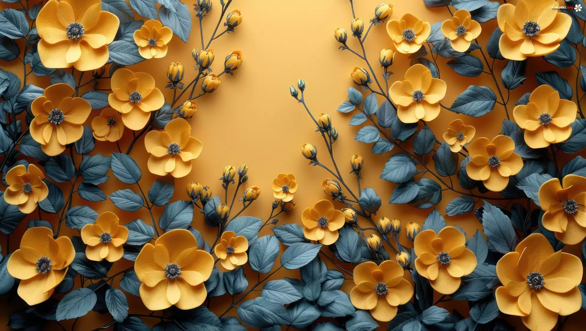 Żółte, Kwiaty, Listki, Tło, Grafika - Zdjęcia