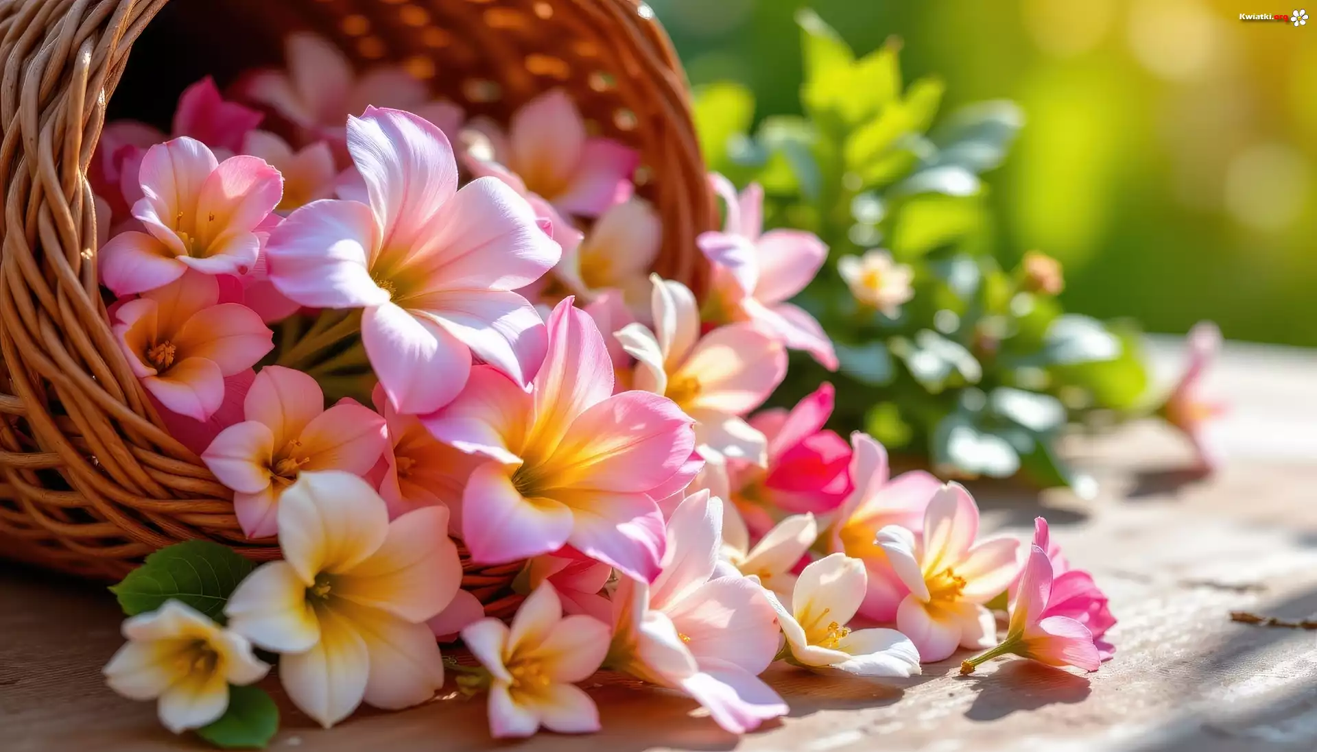 Różowe, Kwiaty, Listki, Wiklinowy, Koszyk - Zdjęcia