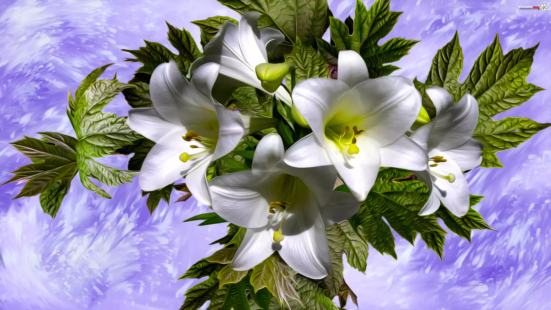 Kwiaty, Lilie, Listki, Grafika - Zdjęcia