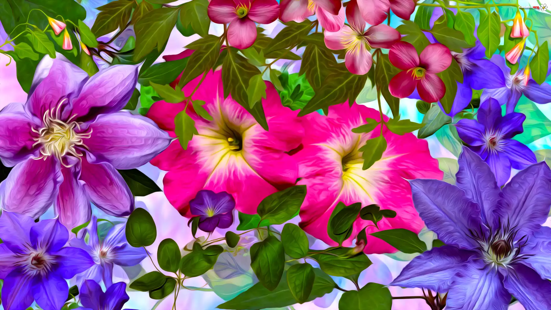 Kwiaty, Powojniki, Listki, Grafika - Zdjęcia