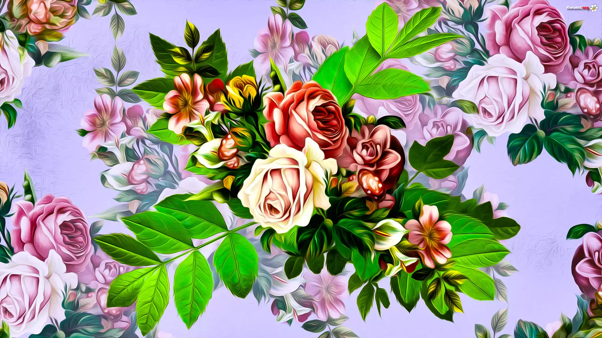Kwiaty, Róże, Listki, Grafika - Zdjęcia