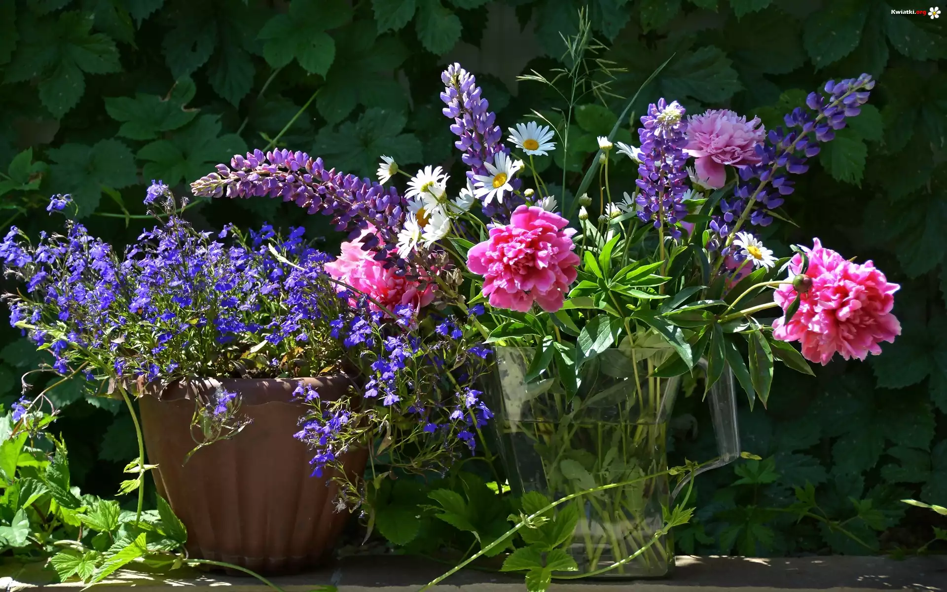 Kwiaty, Bukiet, Piwonia, Łubin, Lobelia - Zdjęcia