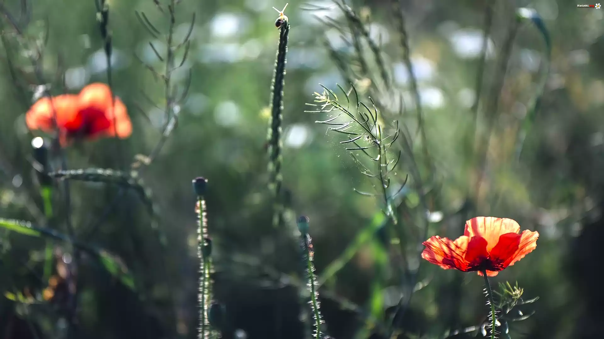 Kwiaty, Dwa, Maki, Trawa - Zdjęcia