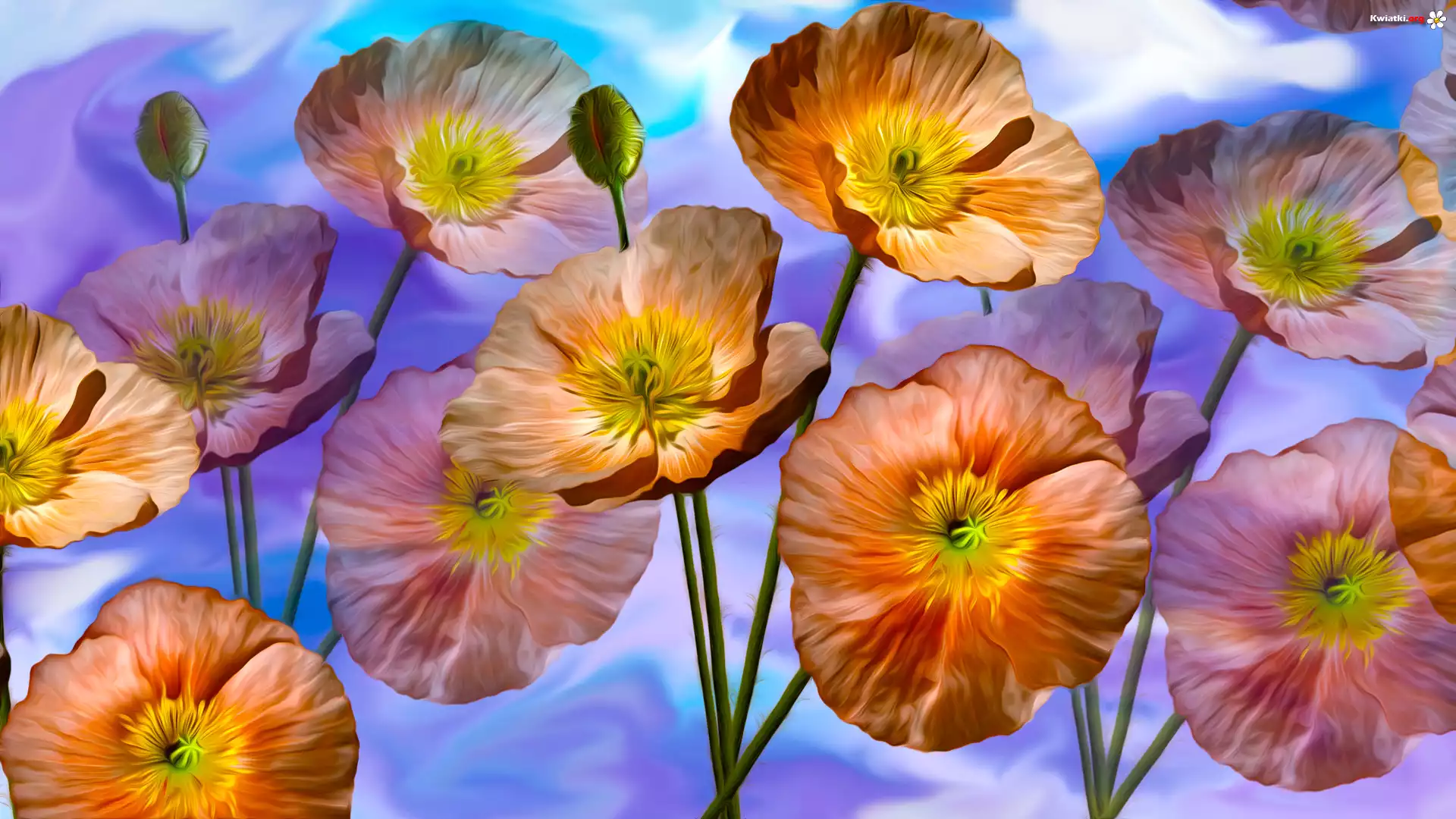 Kwiaty, Rozświetlone, Maki, Grafika - Zdjęcia