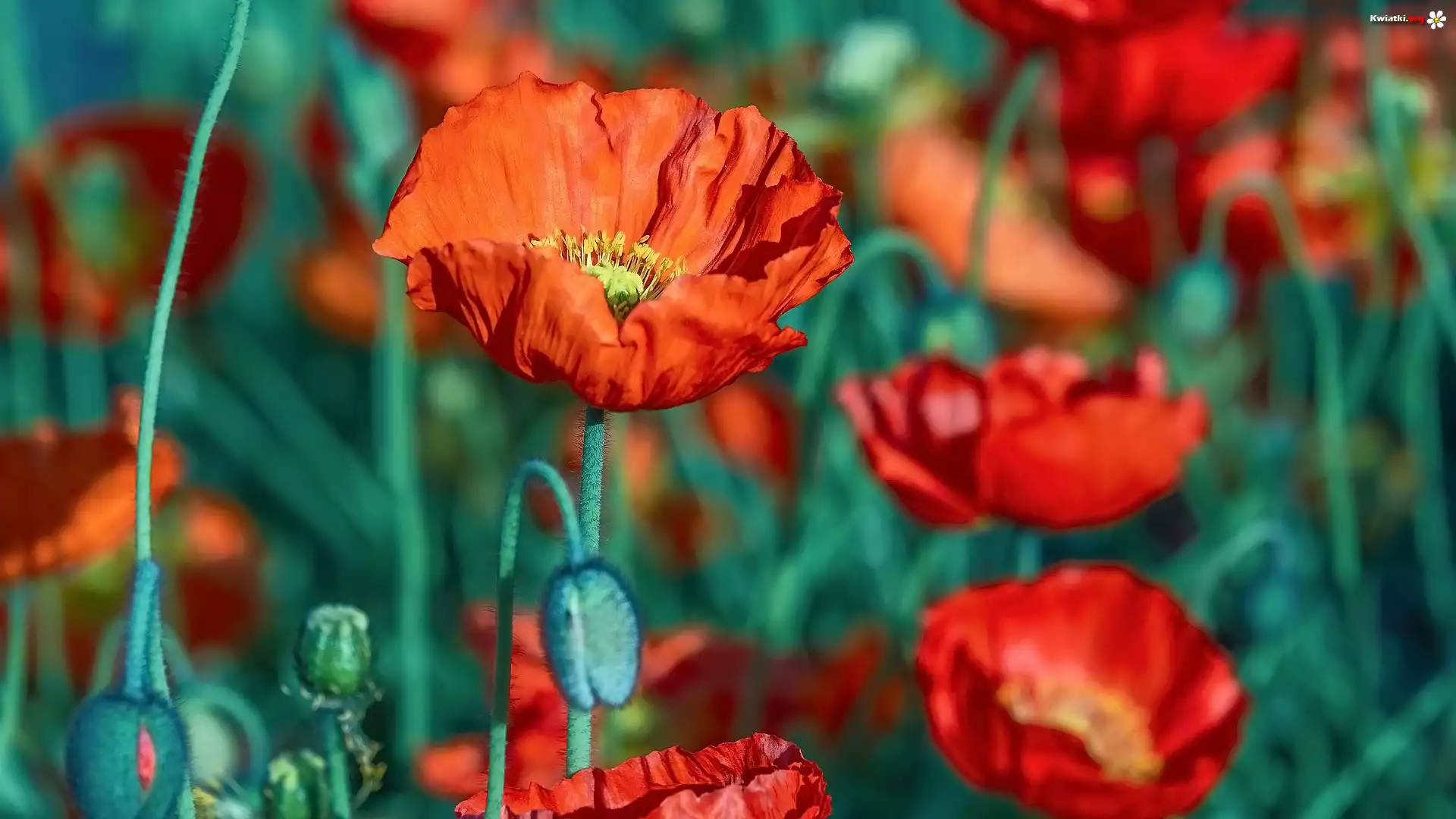 Kwiaty, Czerwone, Rozwinięte, Maki, Pąki - Zdjęcia