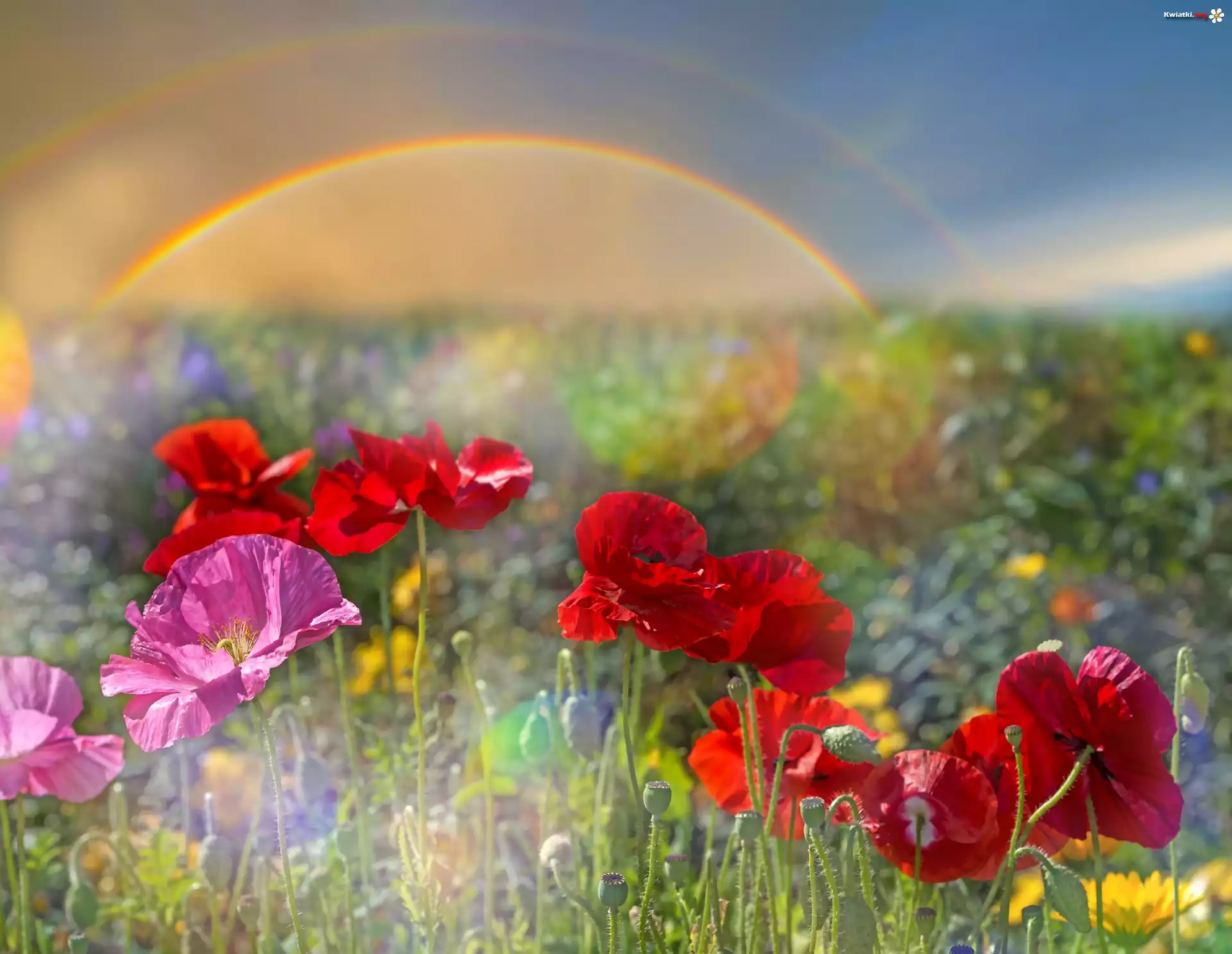 Maki, Kwiaty, Tęcza - Zdjęcia