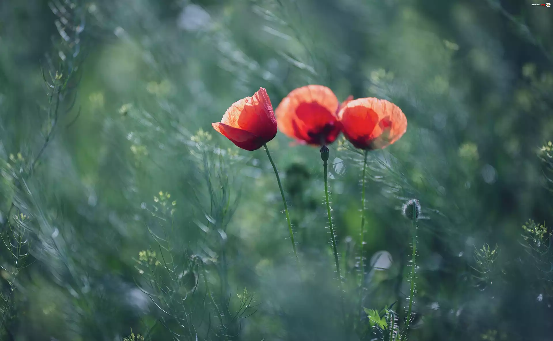 Kwiaty, Trzy, Maki, Rośliny - Zdjęcia