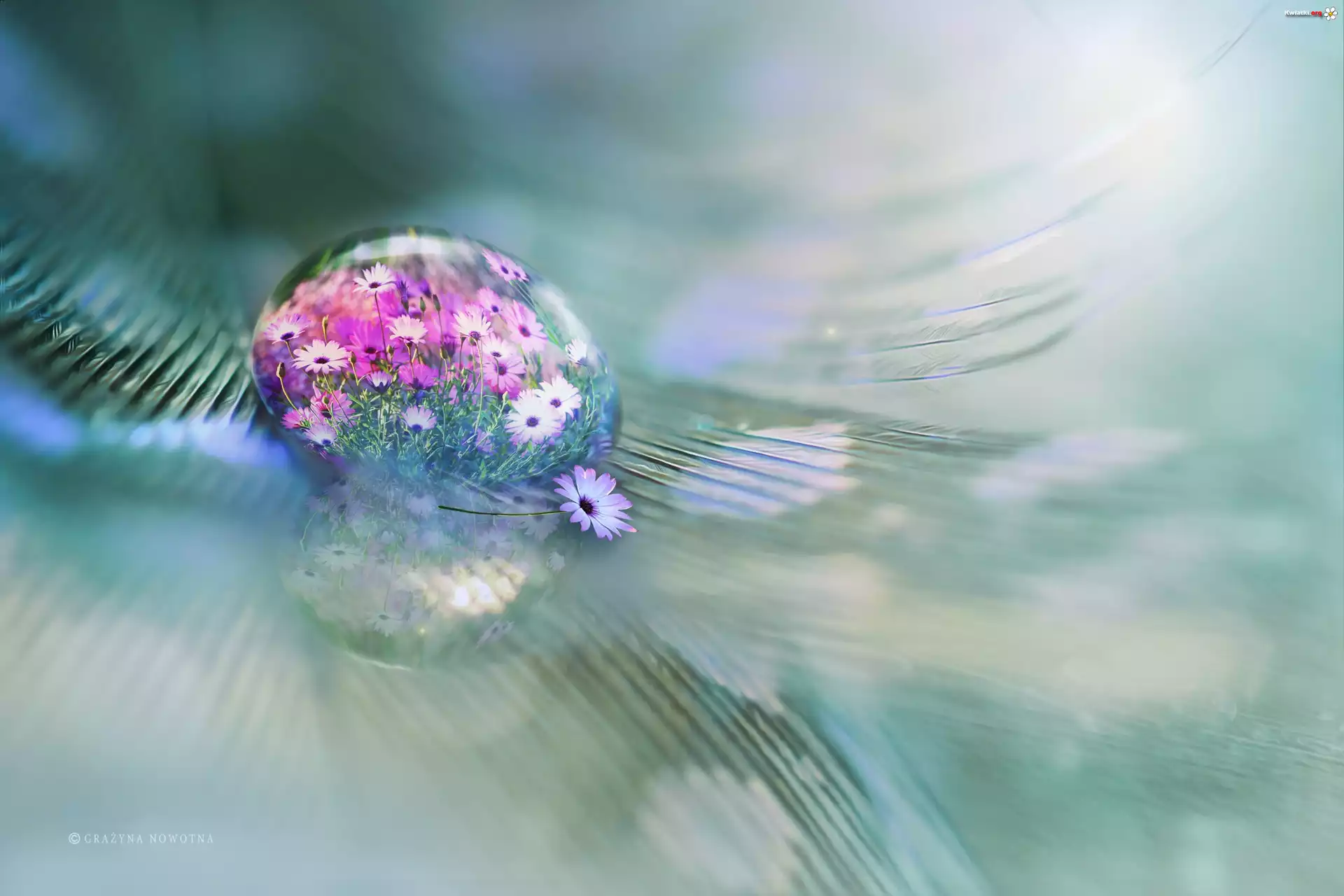 Kwiaty, Kropla, Makro, Piórko - Zdjęcia