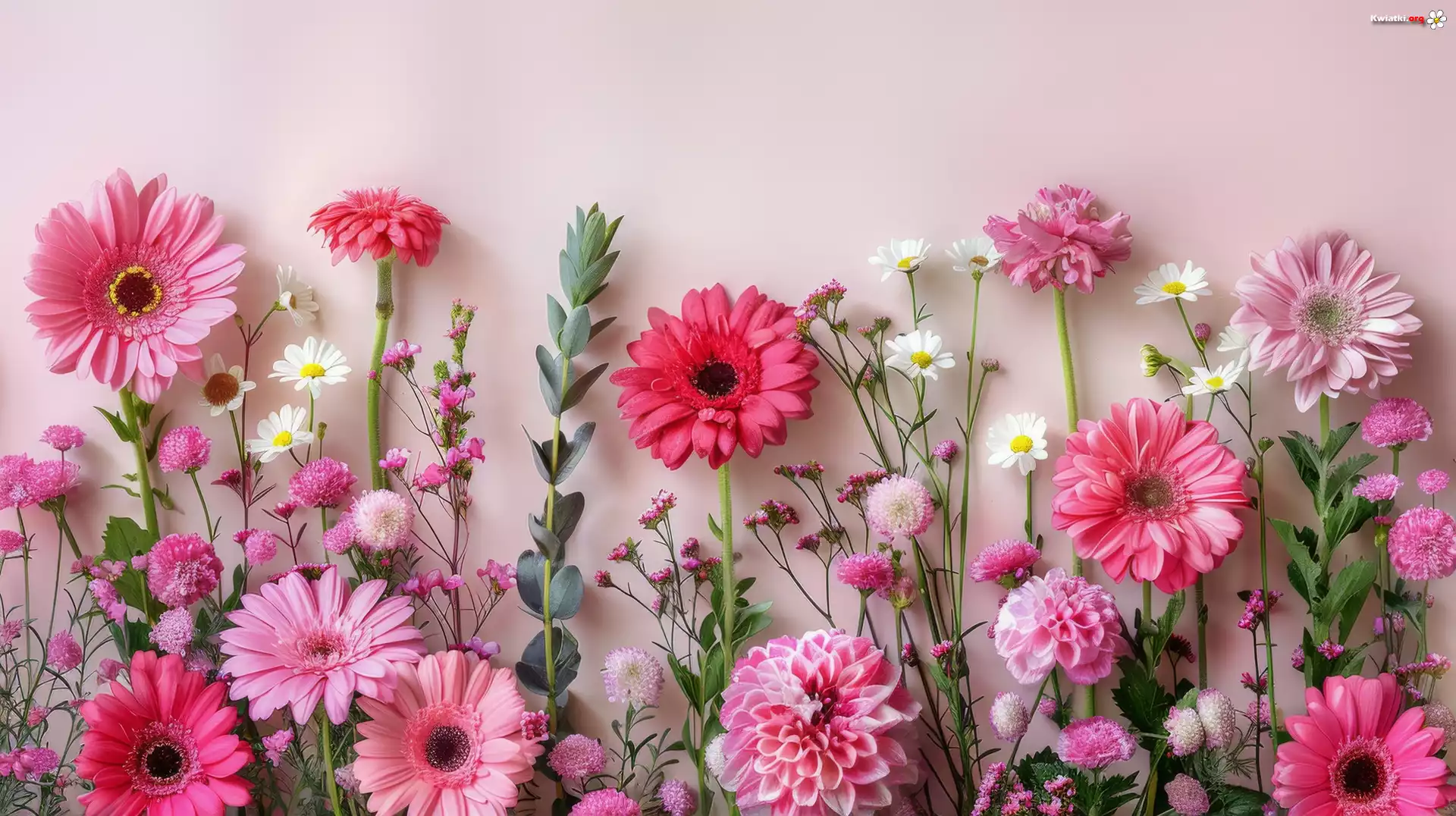 Różowe, Białe, Małe, Kwiaty, Gerbery, Dalie, Tło - Zdjęcia