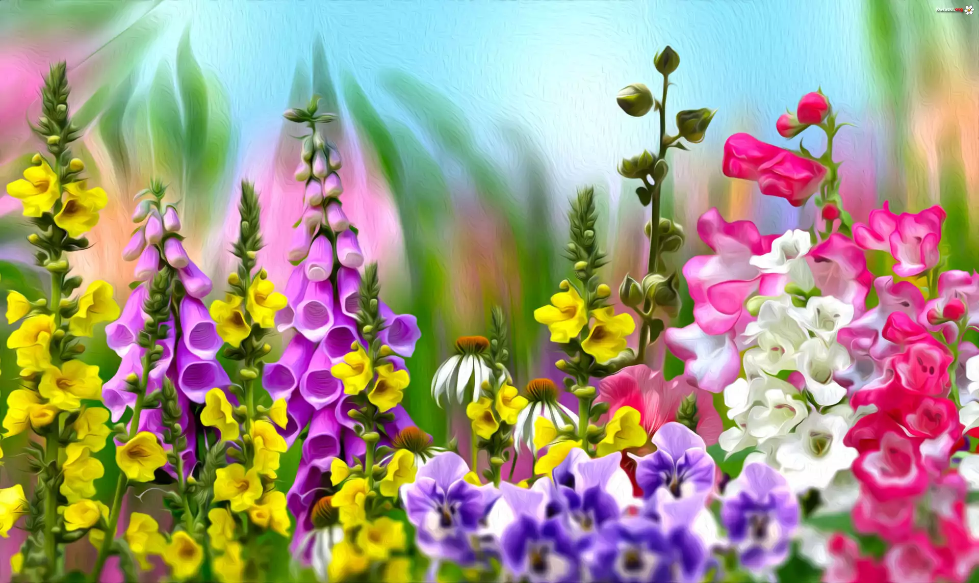 Kwiaty, Naparstnica, Bratki, Malwy, Grafika - Zdjęcia
