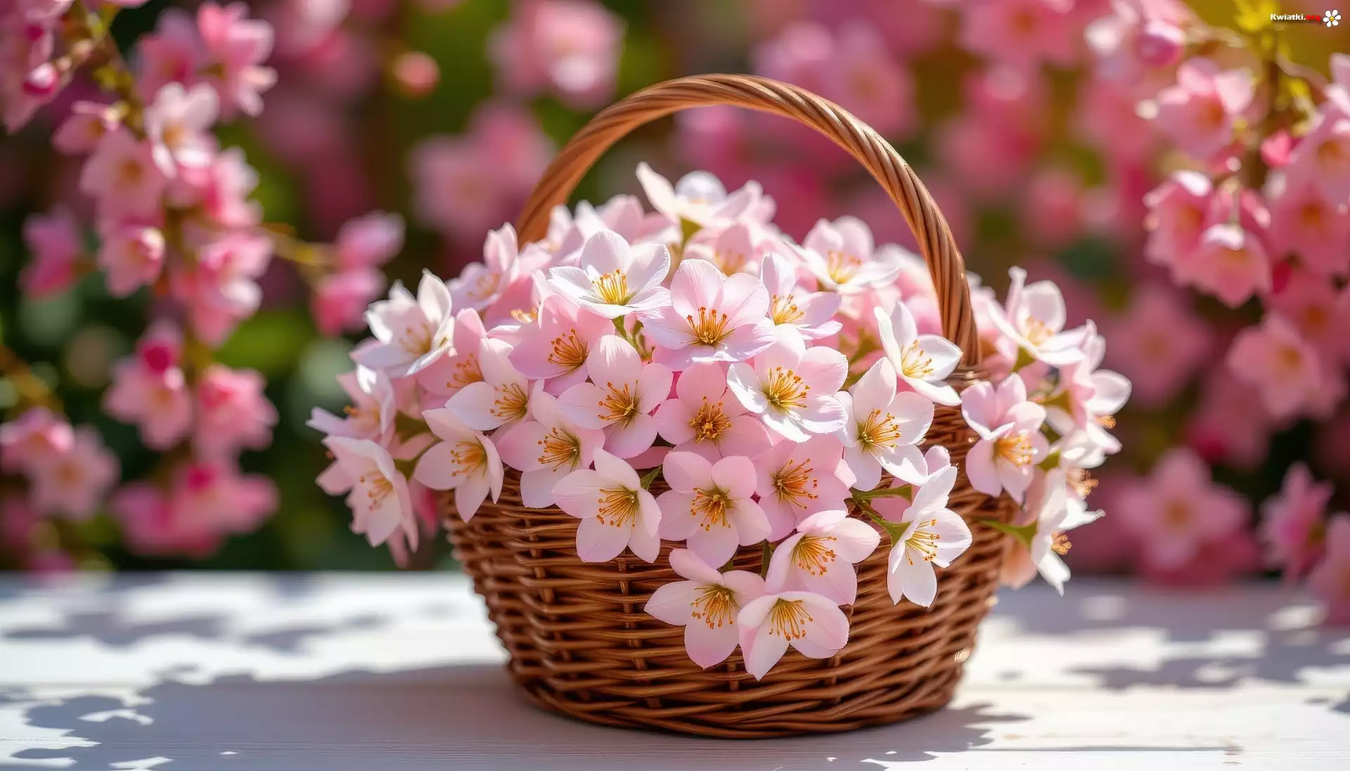 Różowe, Kwiaty, Mały, Wiklinowy, Koszyk - Zdjęcia