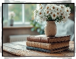 Książki, Kwiaty, Margerytki, Wazon, AI - Zdjęcia