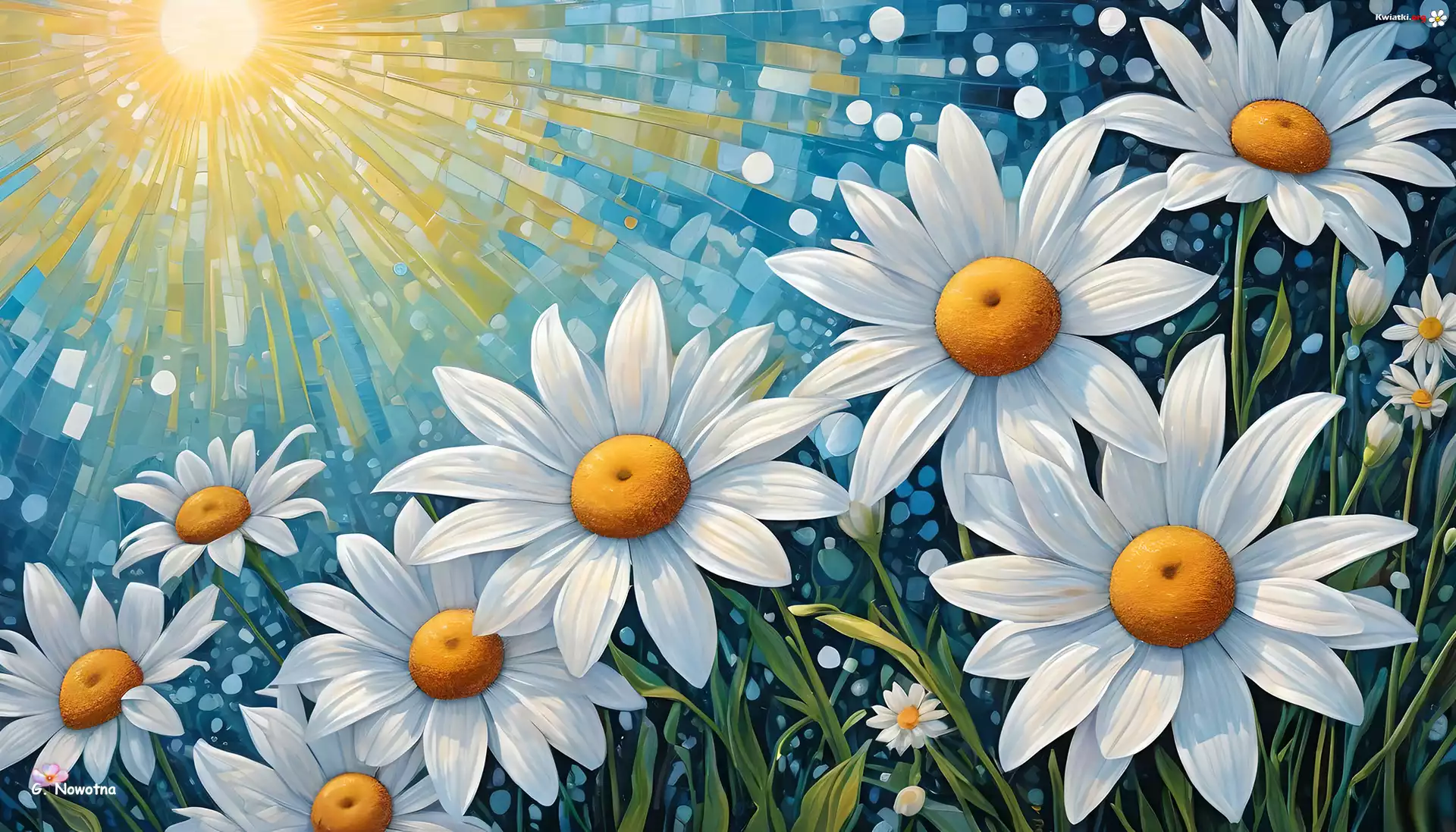 Kwiat Białe, Kwiaty, Margerytki, Grafika Kwiat