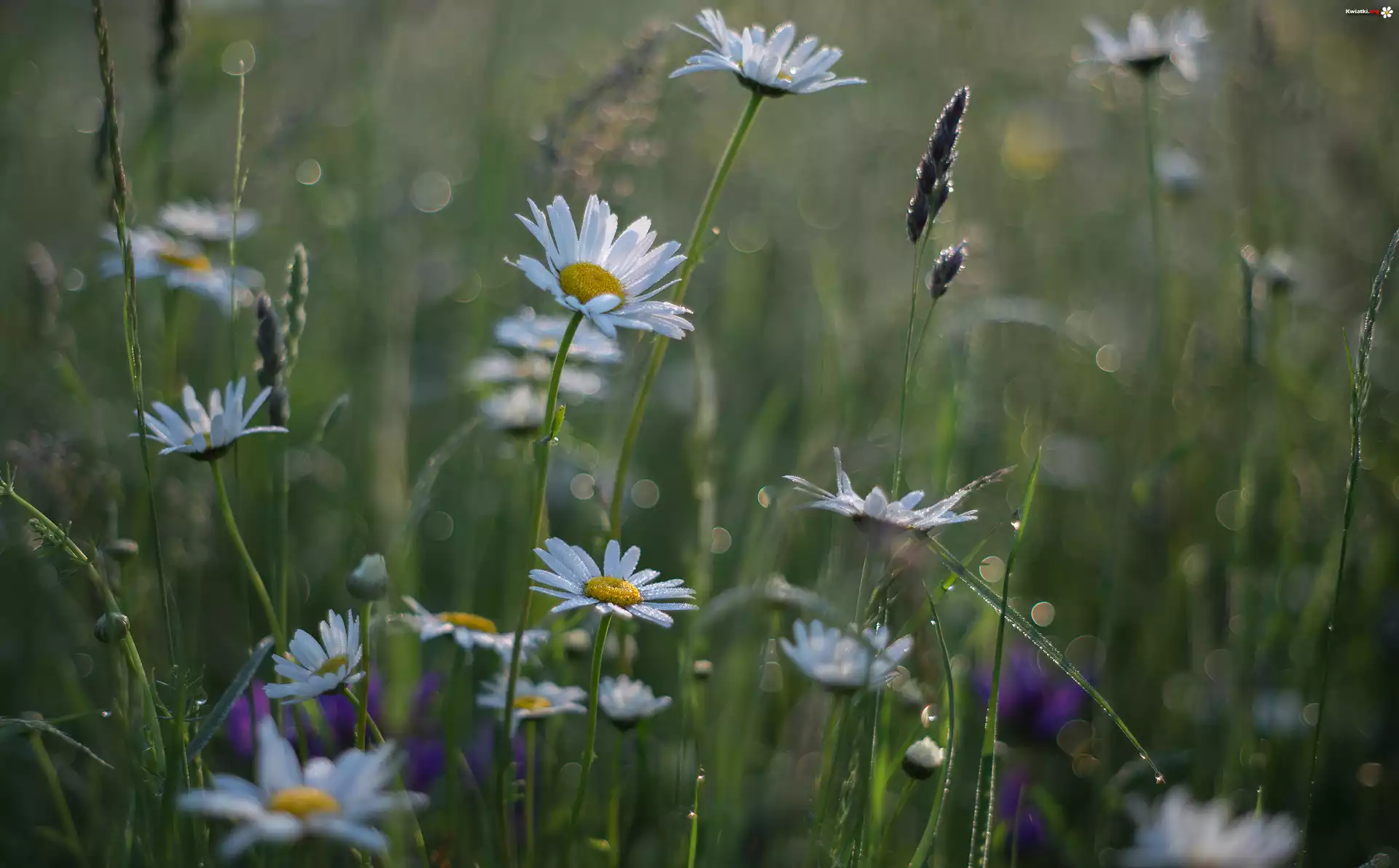 Kwiaty, Zbliżenie, Margerytki, Trawa - Zdjęcia