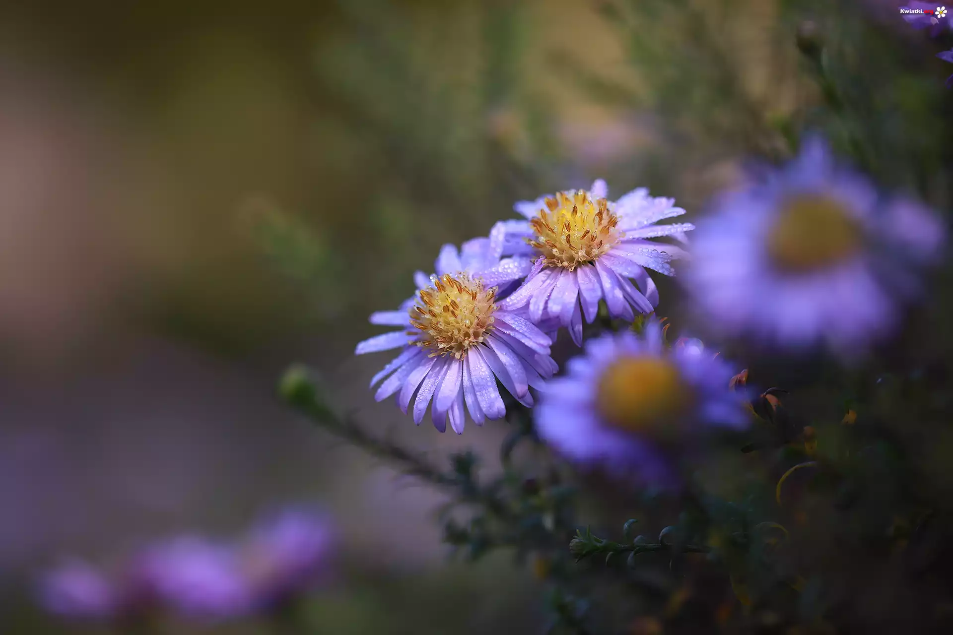 Kwiat Mokre, Fioletowe, Astry, Kwiaty