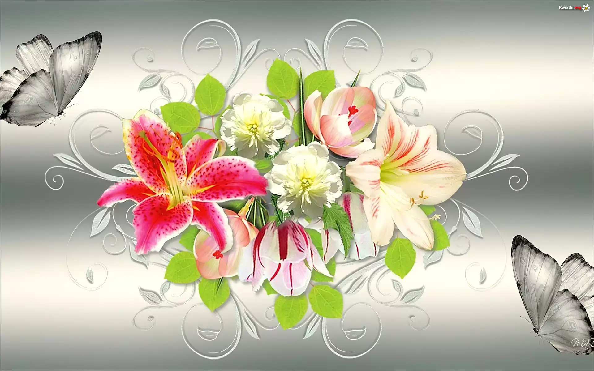 Kwiat Kwiaty, Lilie, Motyle, Abstrakcja