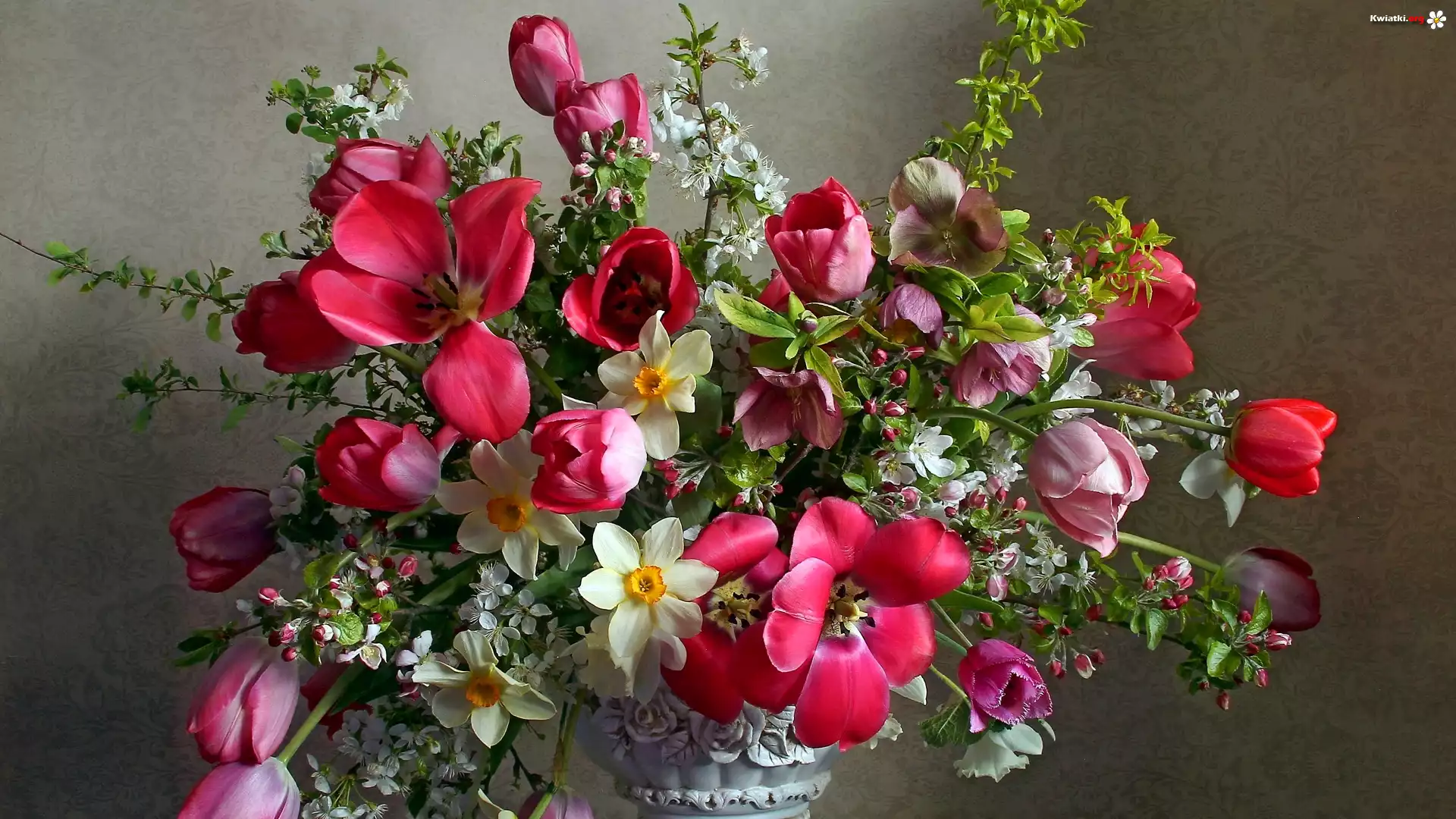 Kwiaty, Bukiet, Tulipany, Narcyzy, Ciemierniki - Zdjęcia