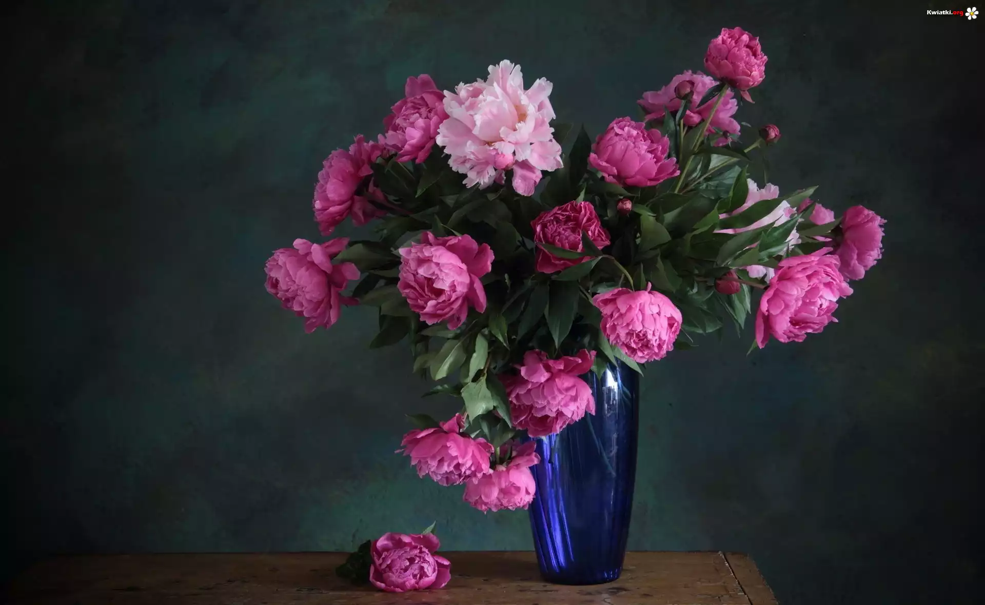 Kwiaty, Różowe, Piwonie, Niebieski, Wazon - Zdjęcia