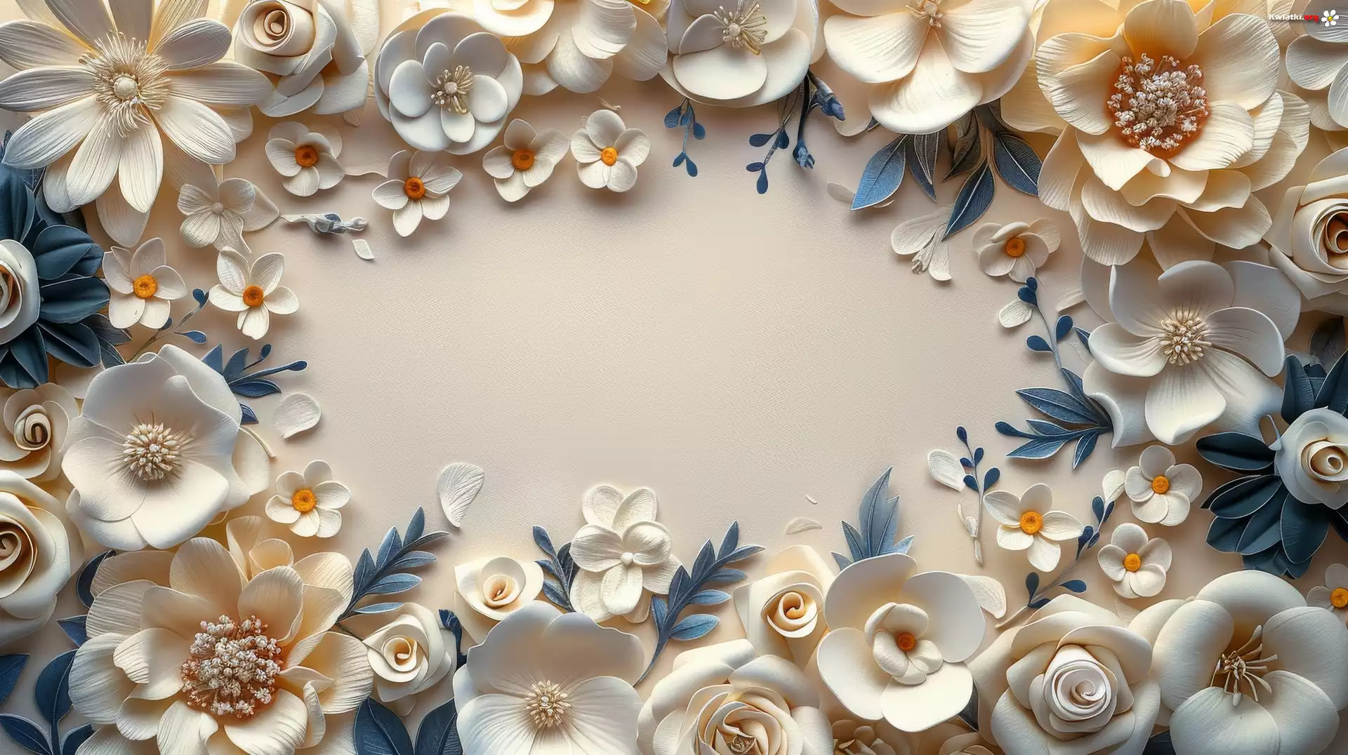 Białe, Kwiaty, Niebieskie, Listki, Grafika - Zdjęcia