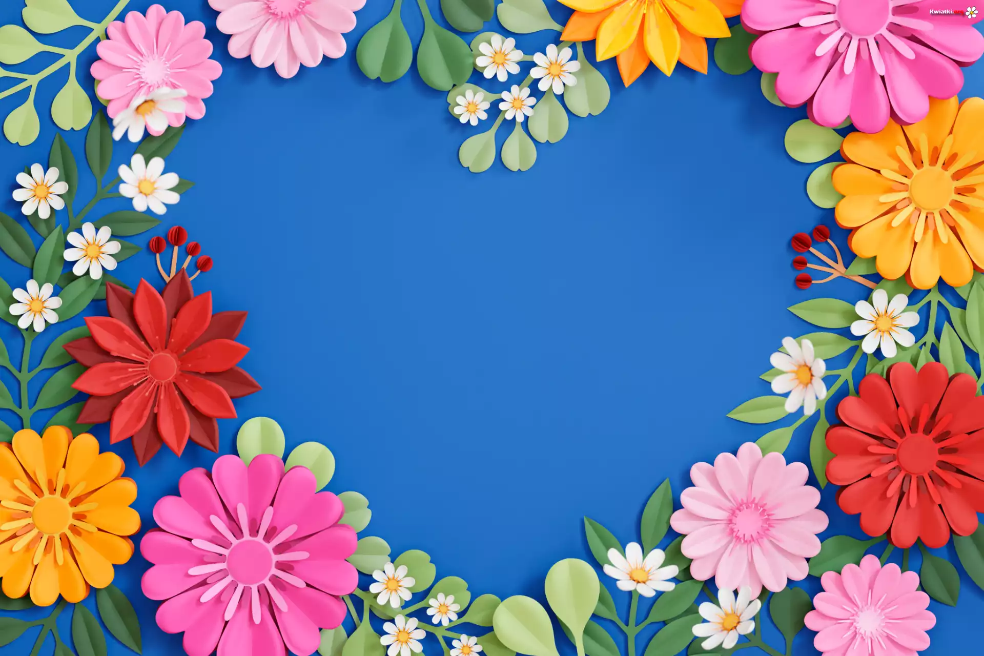 Kolorowe, Kwiaty, Niebieskie, Tło, Grafika - Zdjęcia