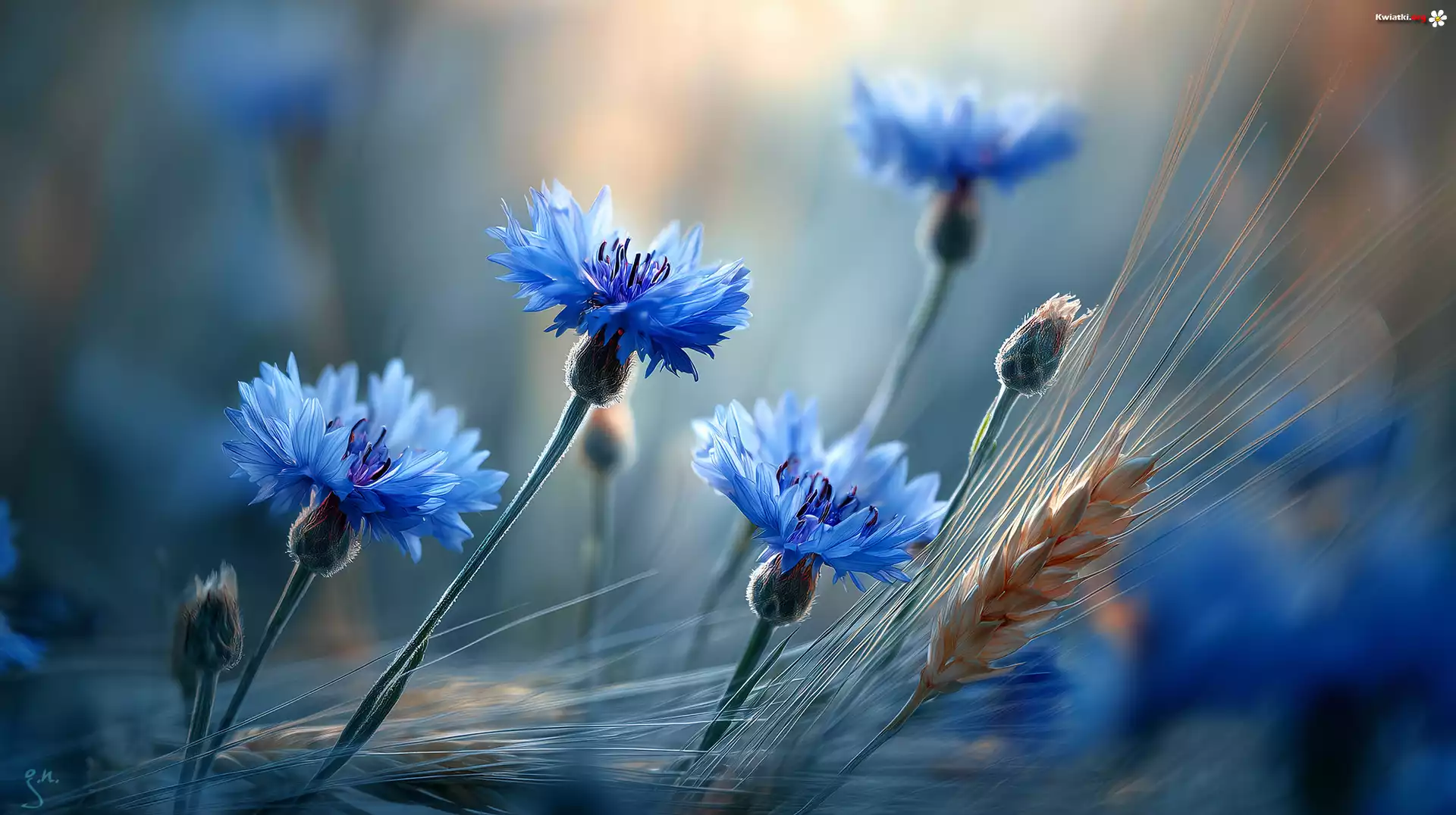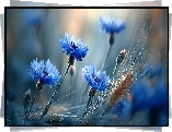 Chabry, Kłosy, Niebieskie, Kwiaty, Zboże, Grafika AI - Zdjęcia