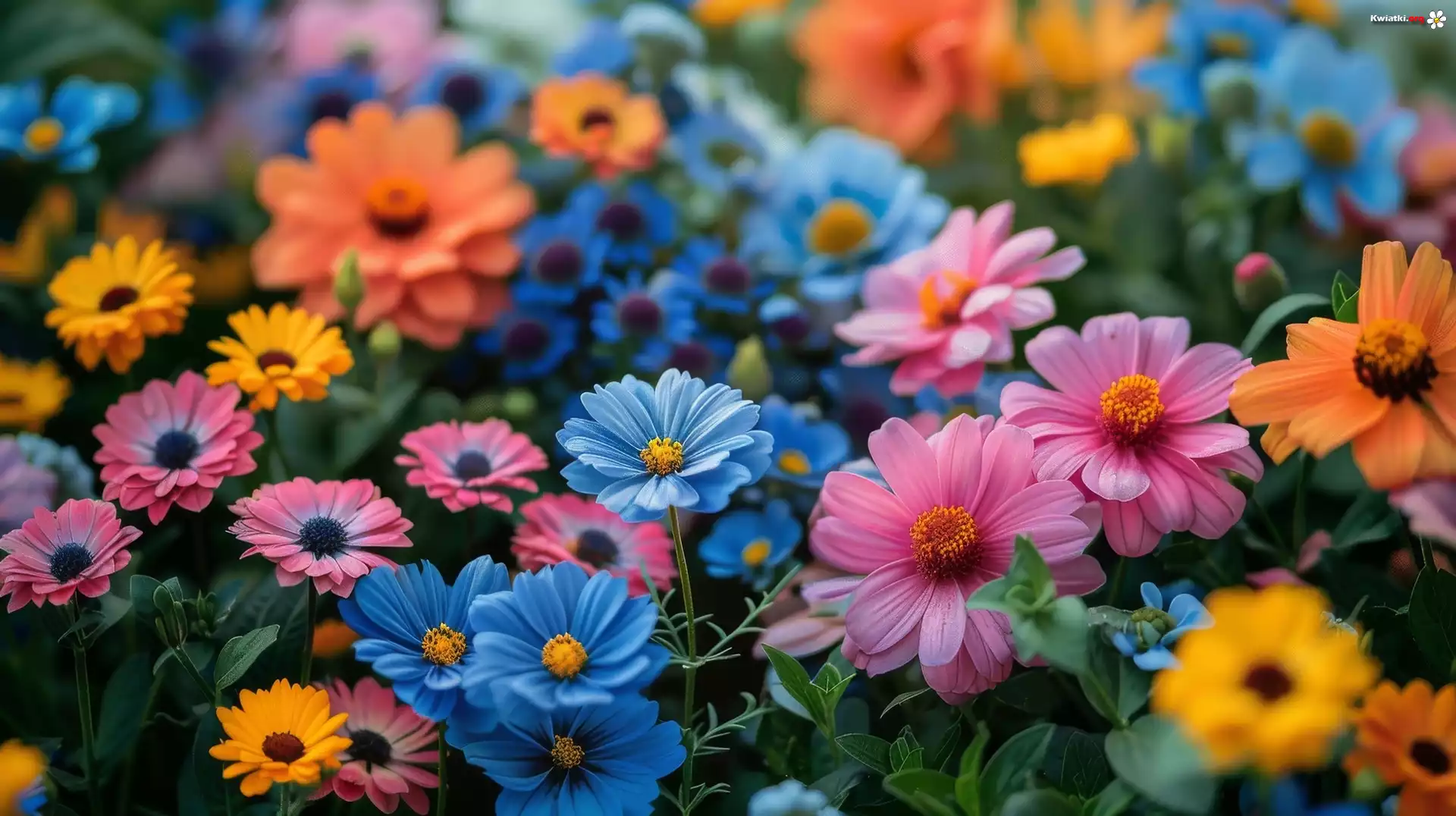 Niebieskie, Różowe, Kolorowe, Kwiaty - Zdjęcia