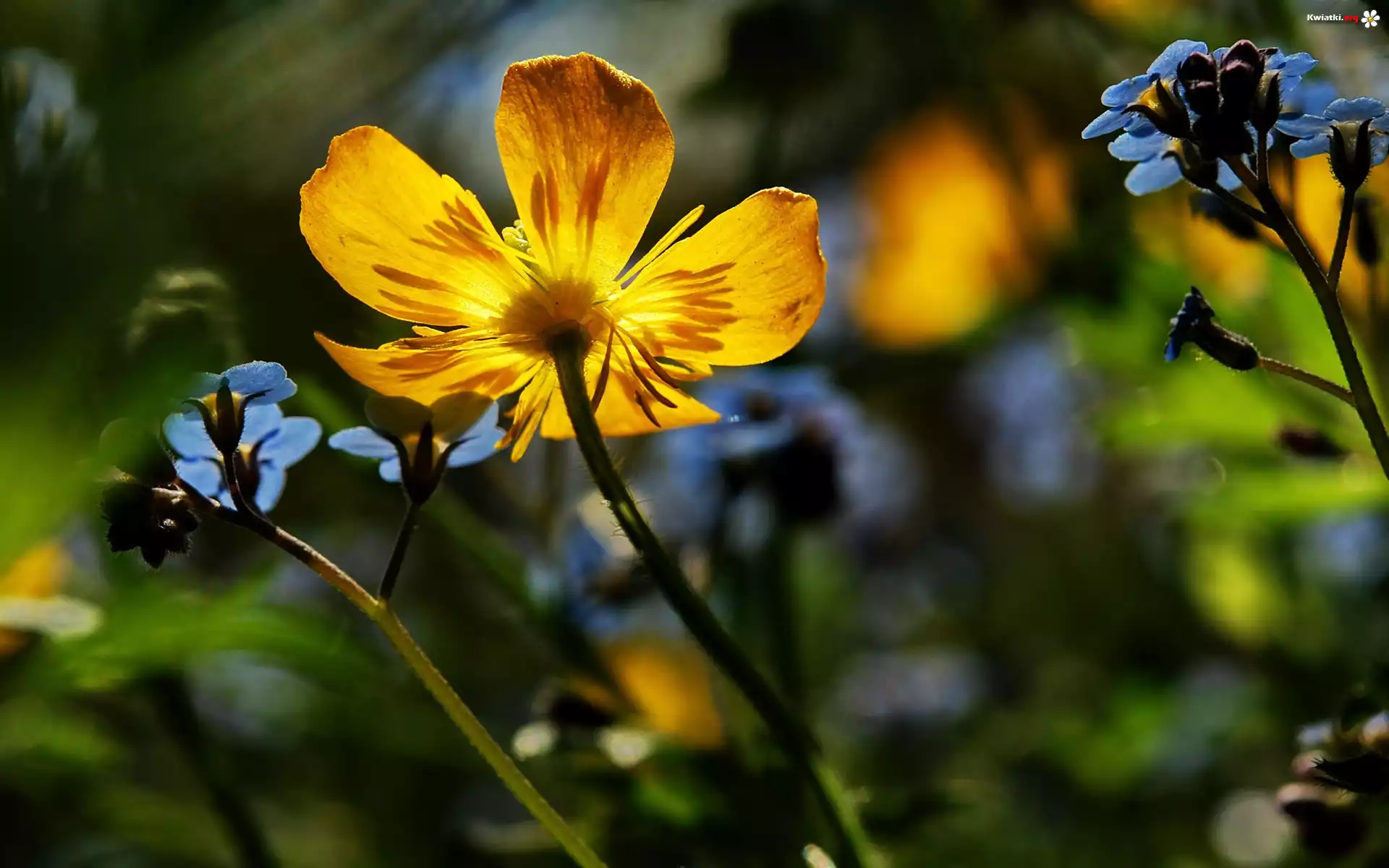 Żółte, Niebieskie, Kwiaty, Rozmycie - Zdjęcia