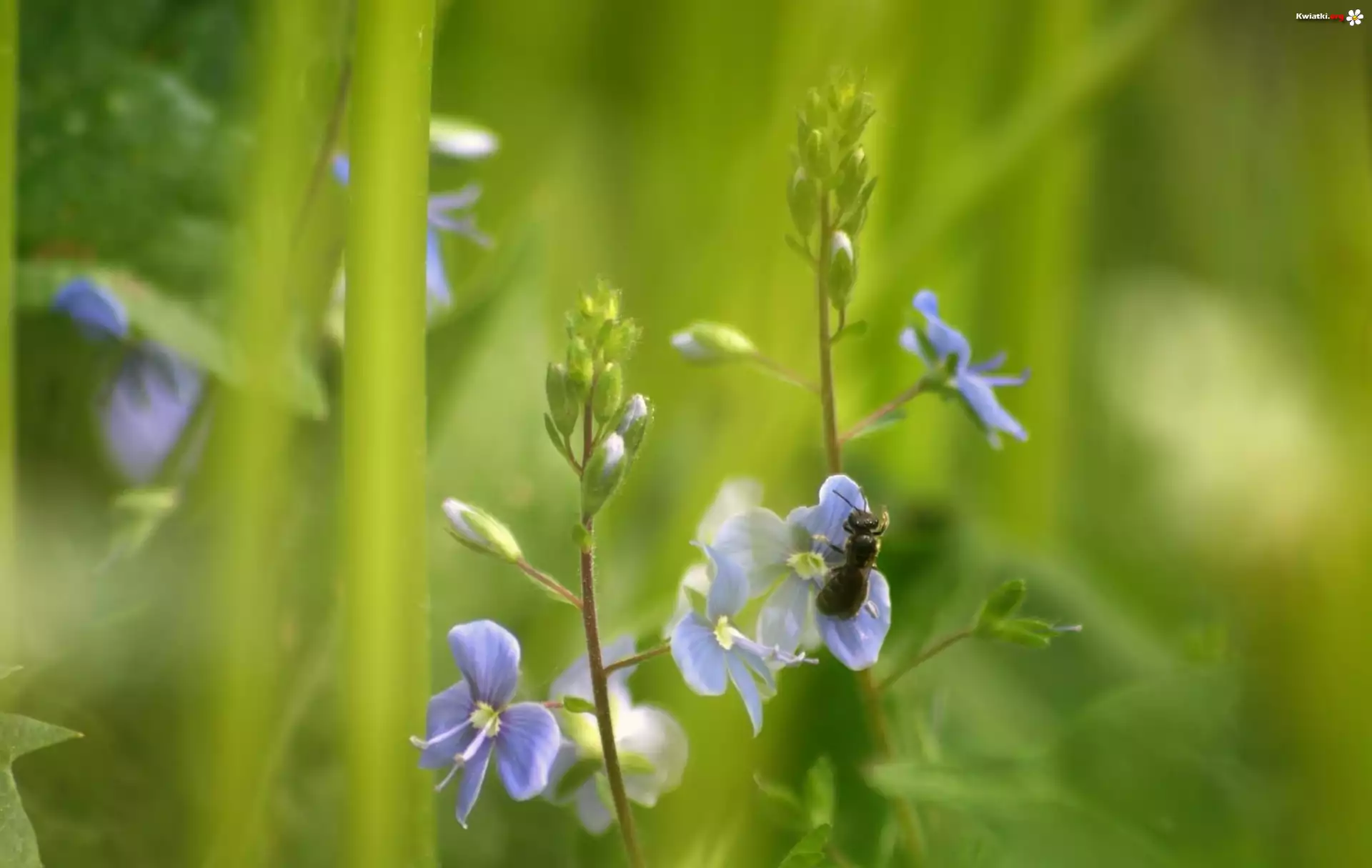 Niebieskie, Kwiaty, Owad - Zdjęcia