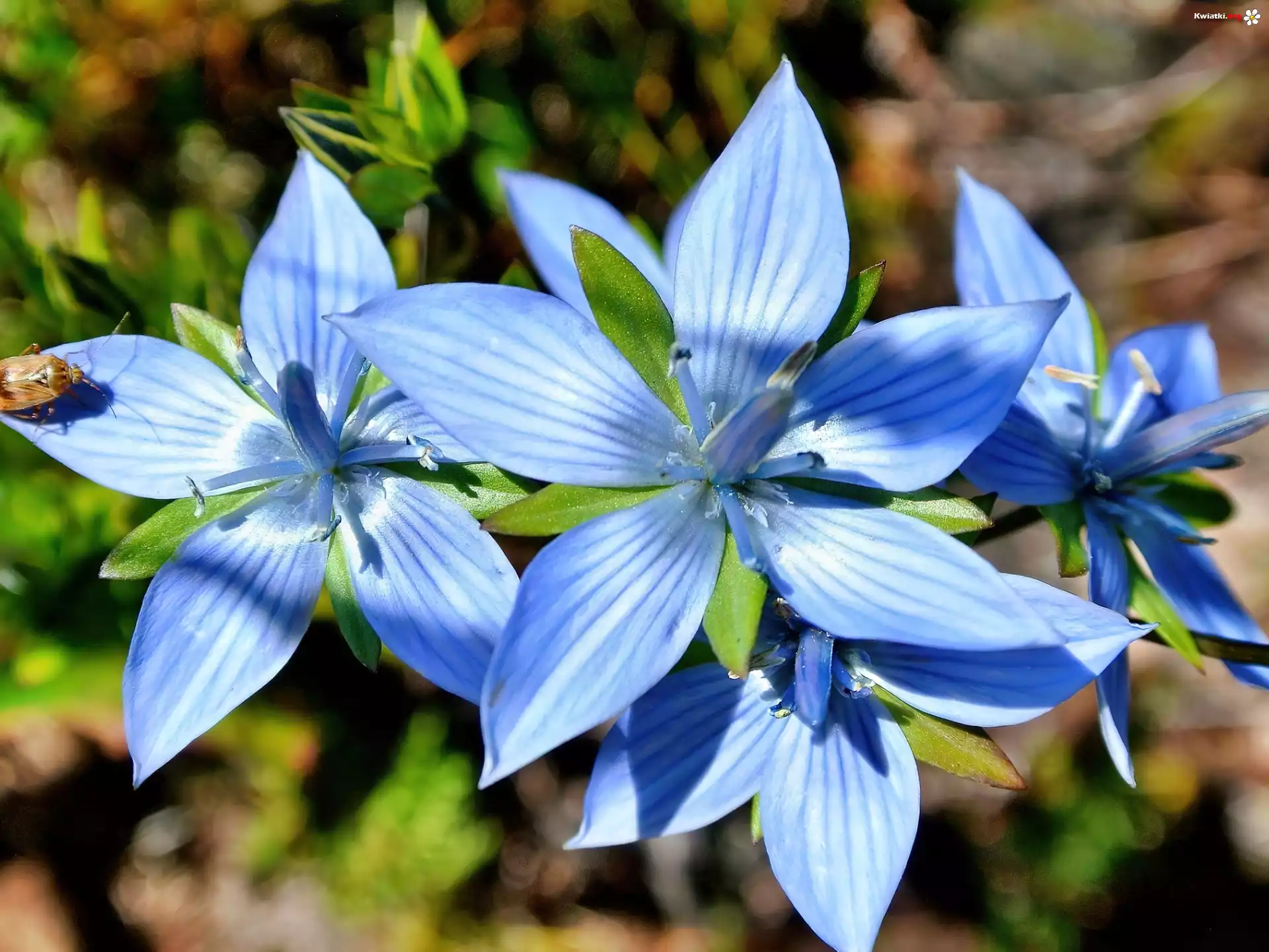 Niebieskie, Kwiaty, Owad - Zdjęcia
