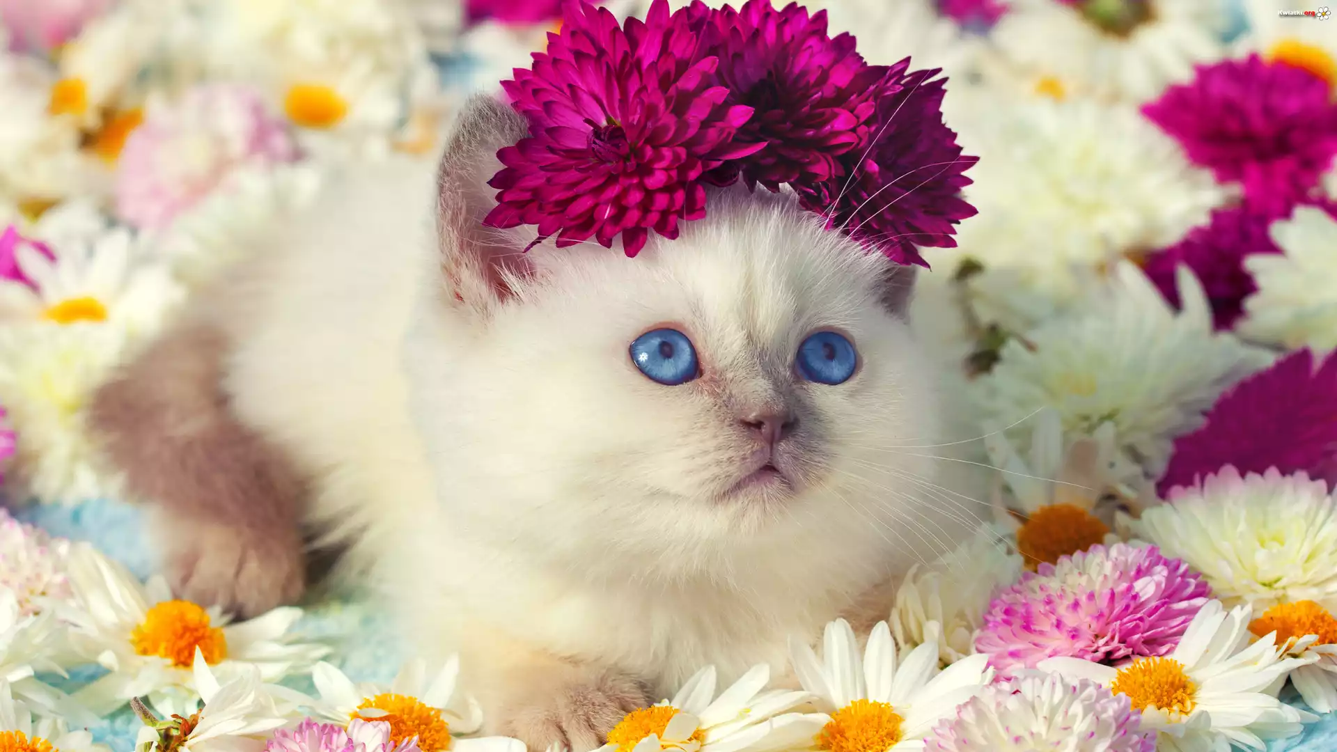 Kwiaty, Kot, Ragdoll, Niebieskie, Oczy - Zdjęcia
