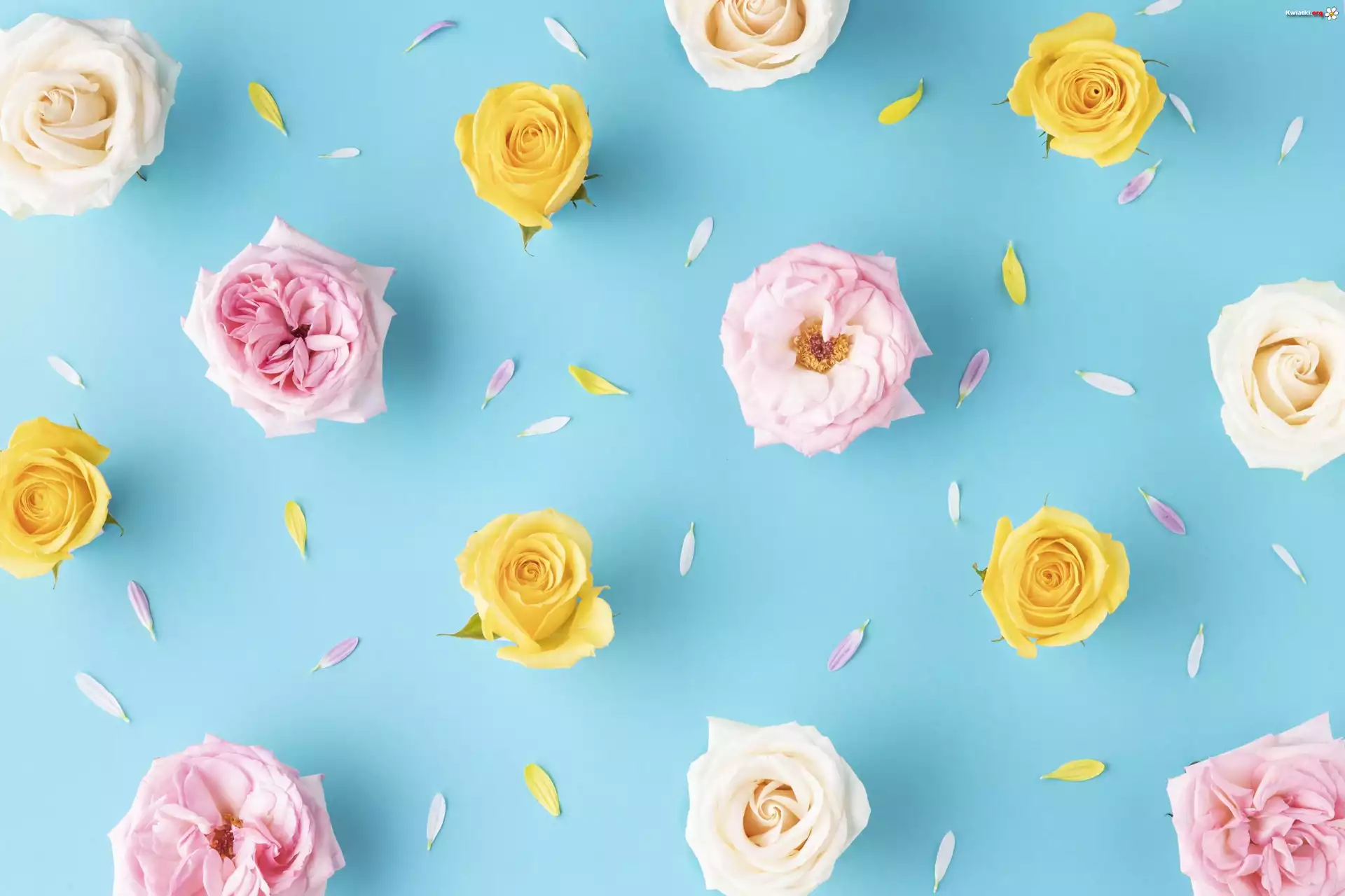 Kwiat Kwiaty, Kolorowe, Róże, Płatki, Niebieskie, Tło