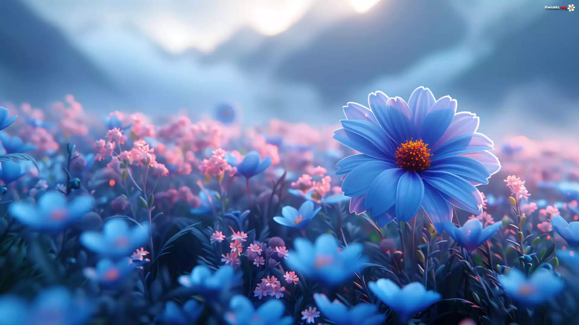 Kwiat Polana, Kwiaty, Niebieskie, Różowe, Tło