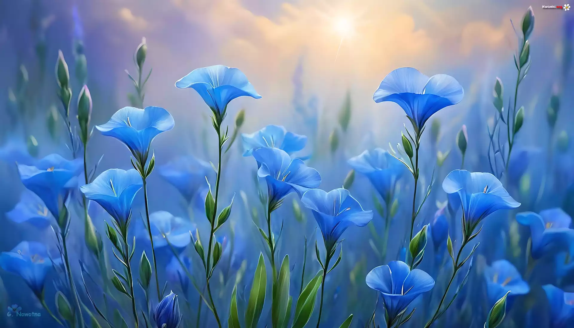 Niebieskie, Kwiaty, Niebo, Grafika AI - Zdjęcia