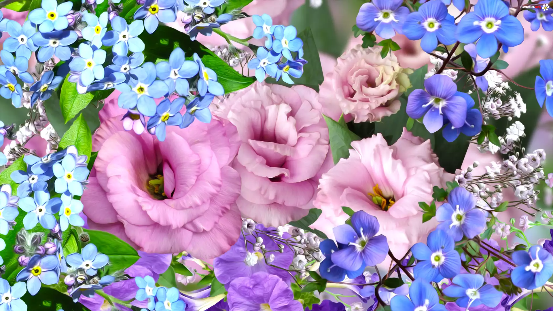 Kwiaty, Eustoma, Niezapominajki, Grafika - Zdjęcia