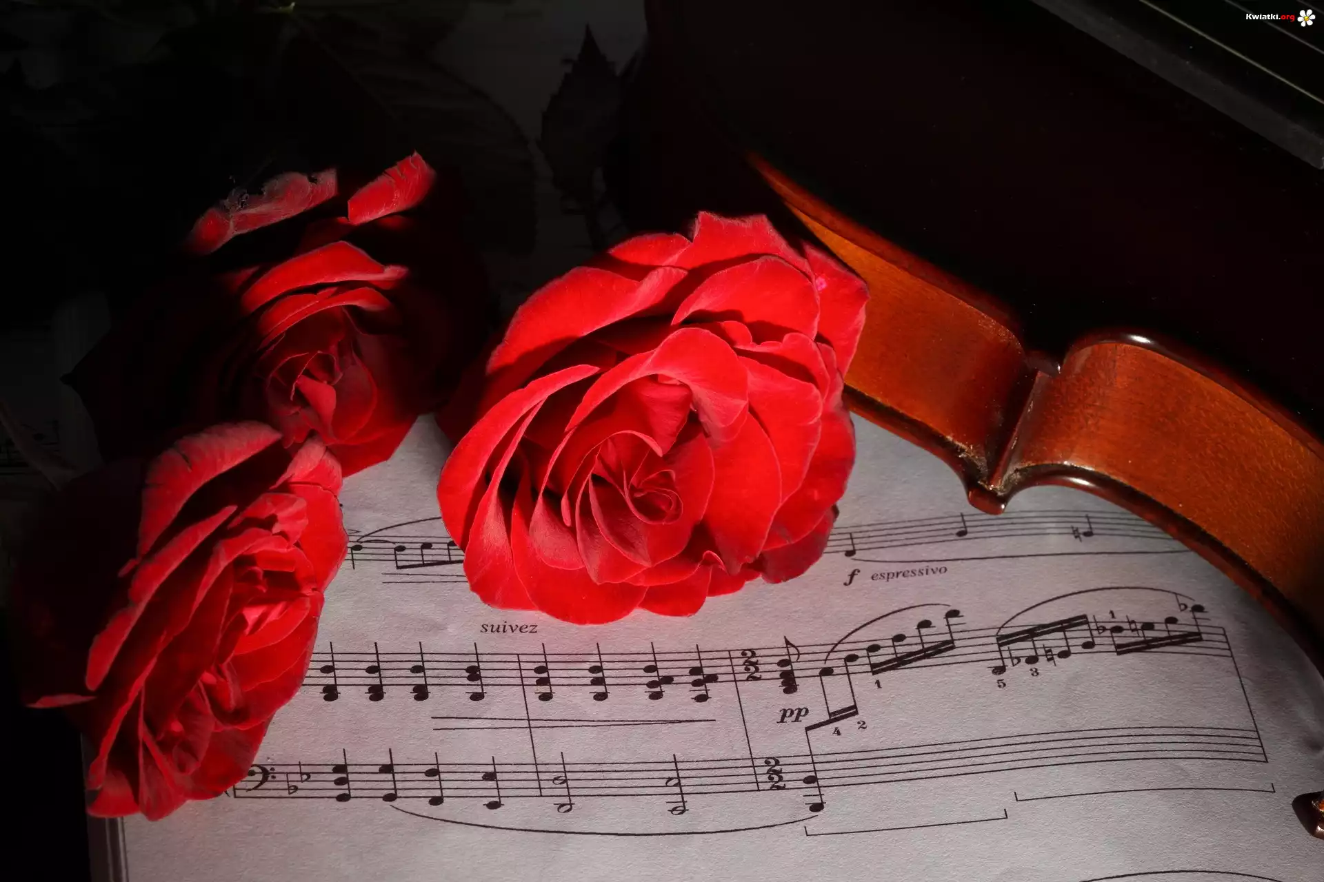 Kwiaty, Roze, Nuty, Skrzypce - Zdjęcia
