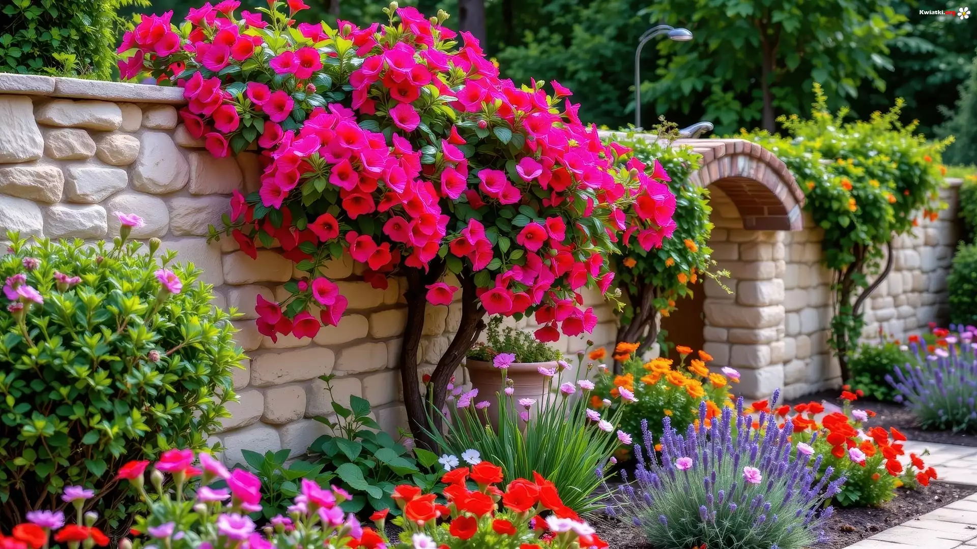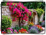 Ogród, Mur, Kolorowe, Kwiaty - Zdjęcia
