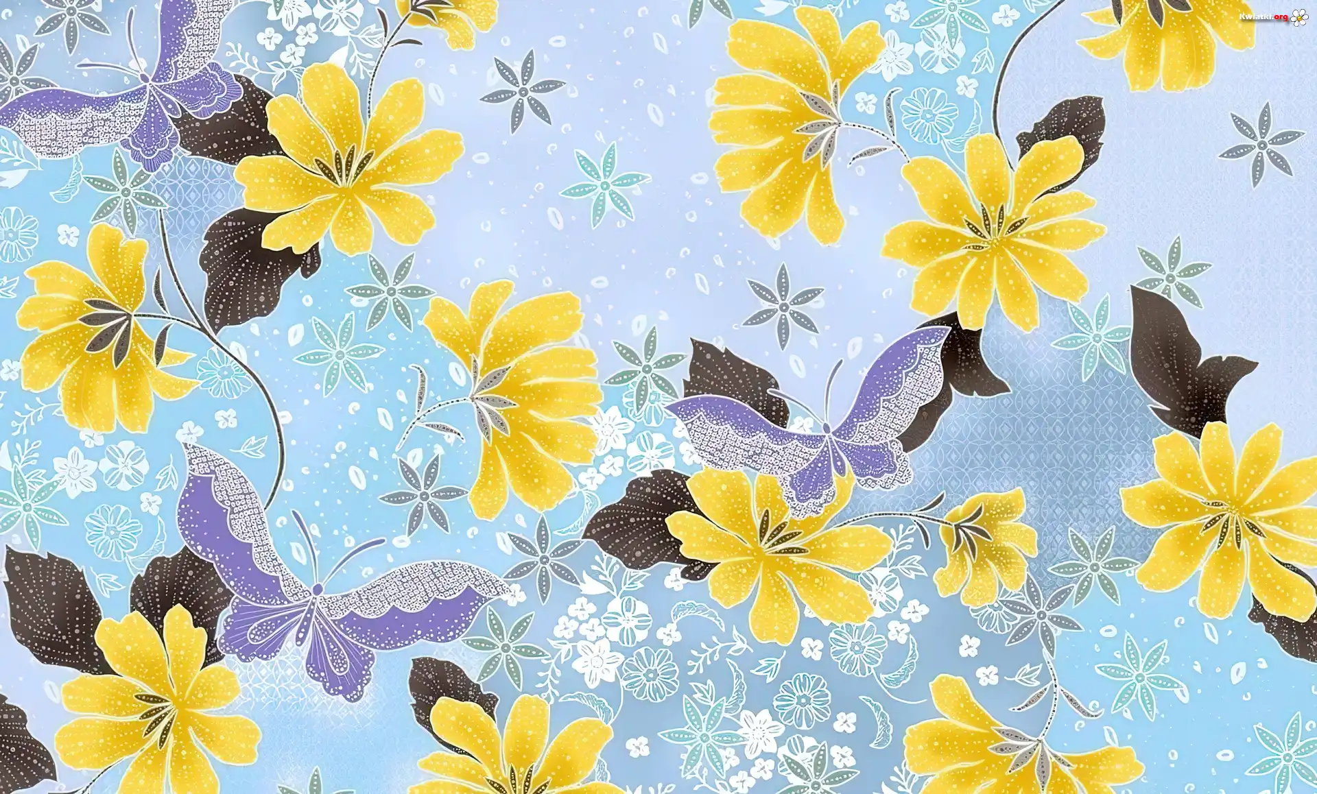 Żółte, Kwiaty, Motyle - Zdjęcia