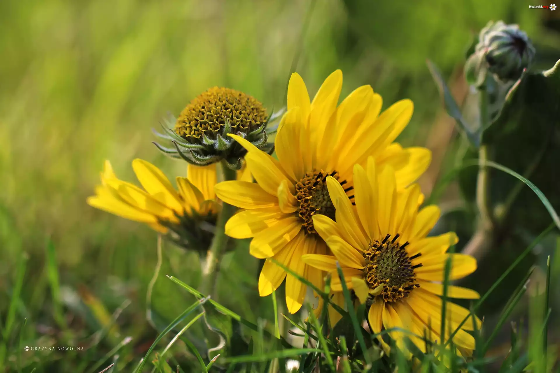 Żółte, Kwiaty, Trawa - Zdjęcia